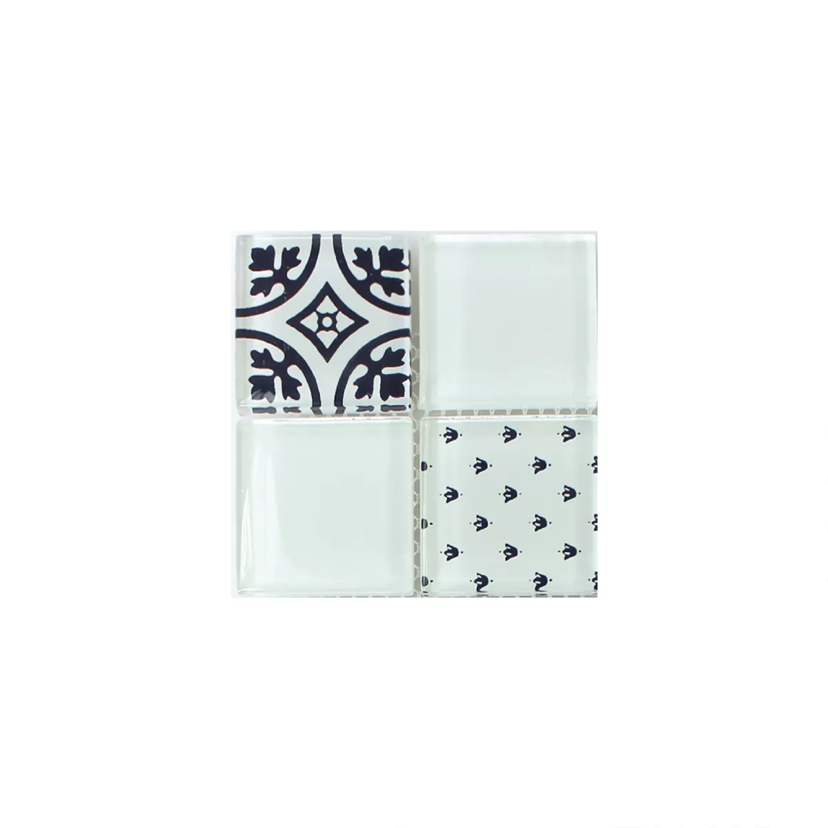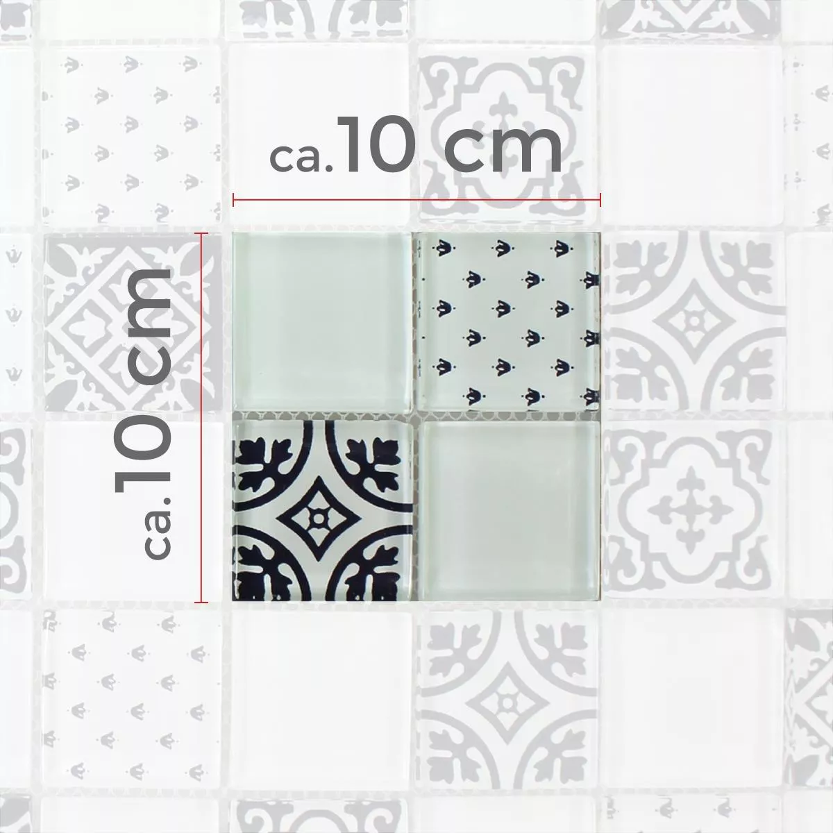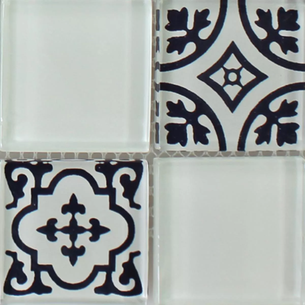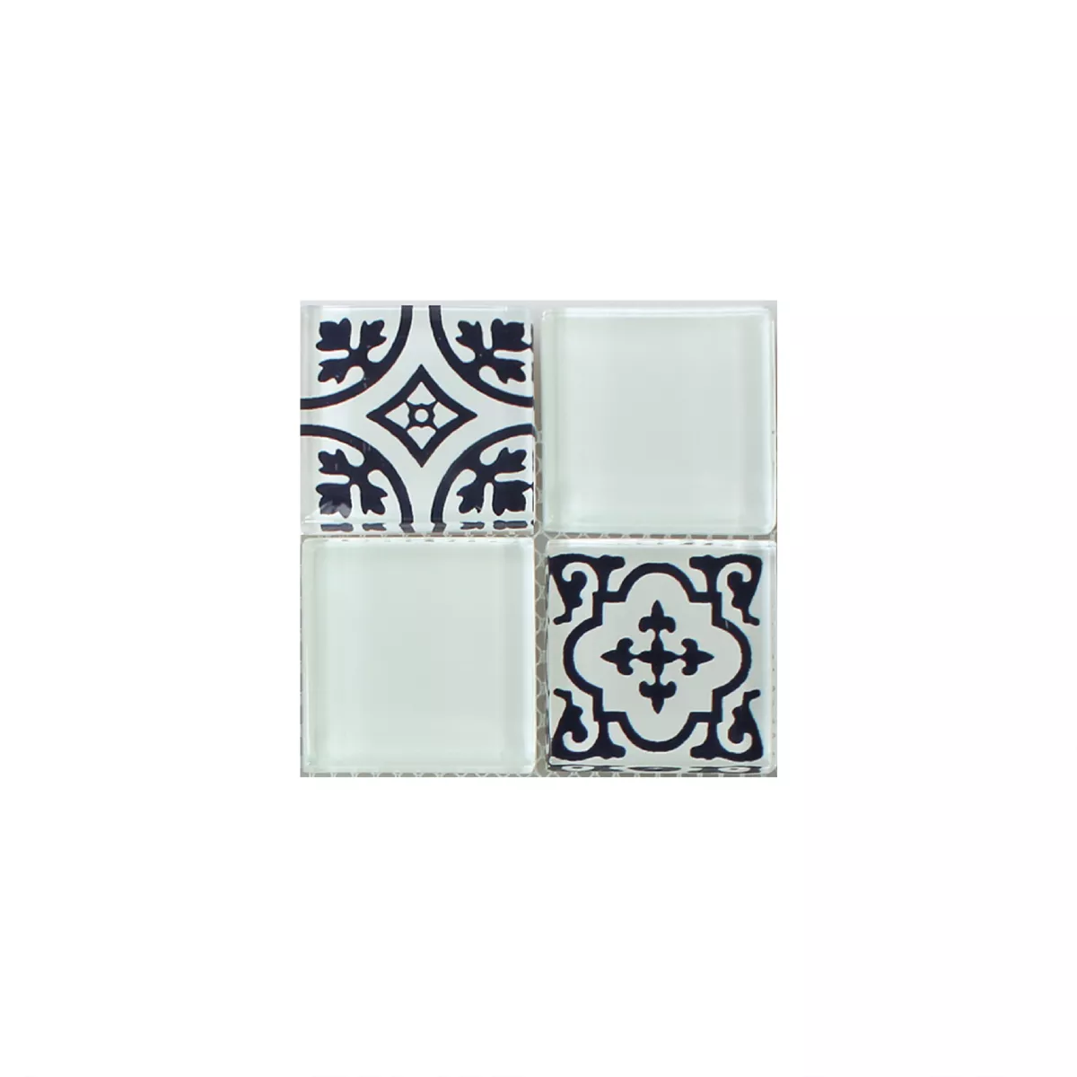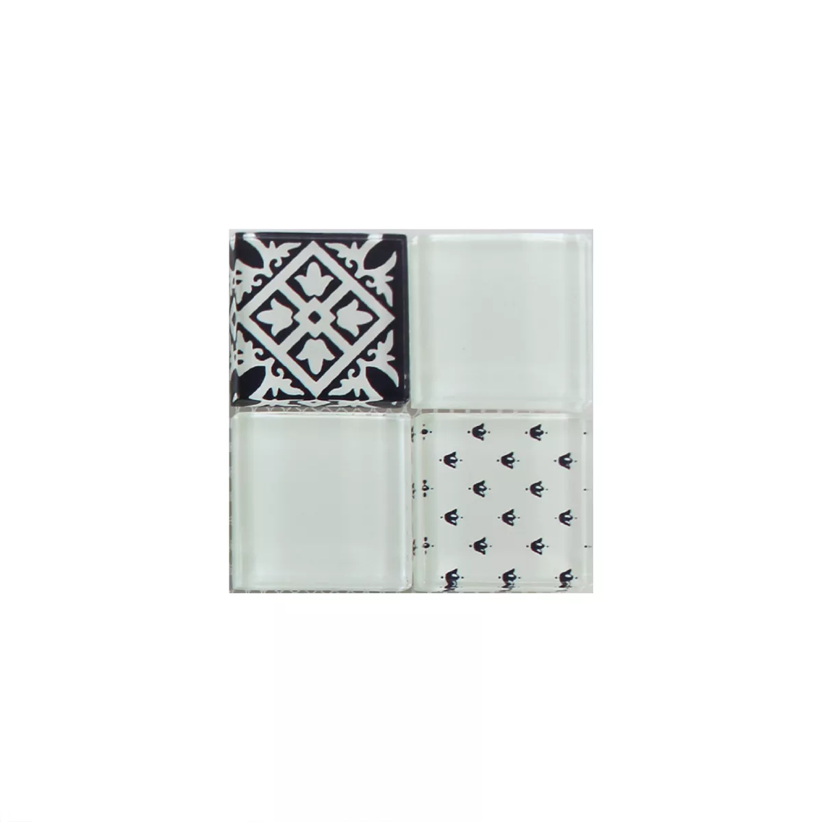 Sample Mozaïektegel Glas Barock Ornament Wit