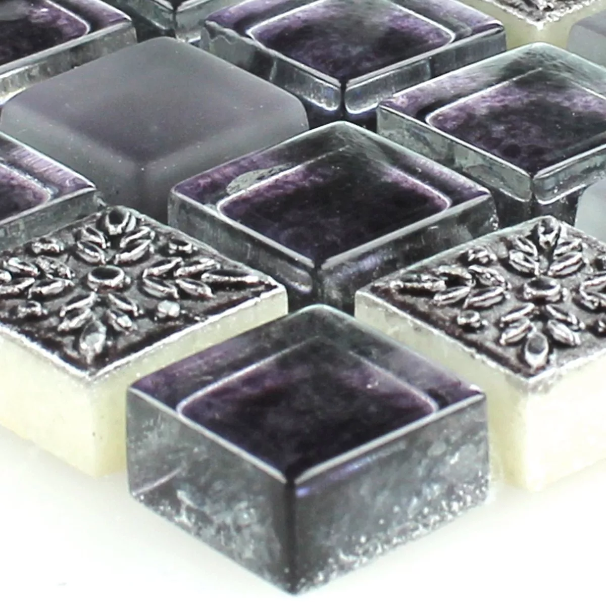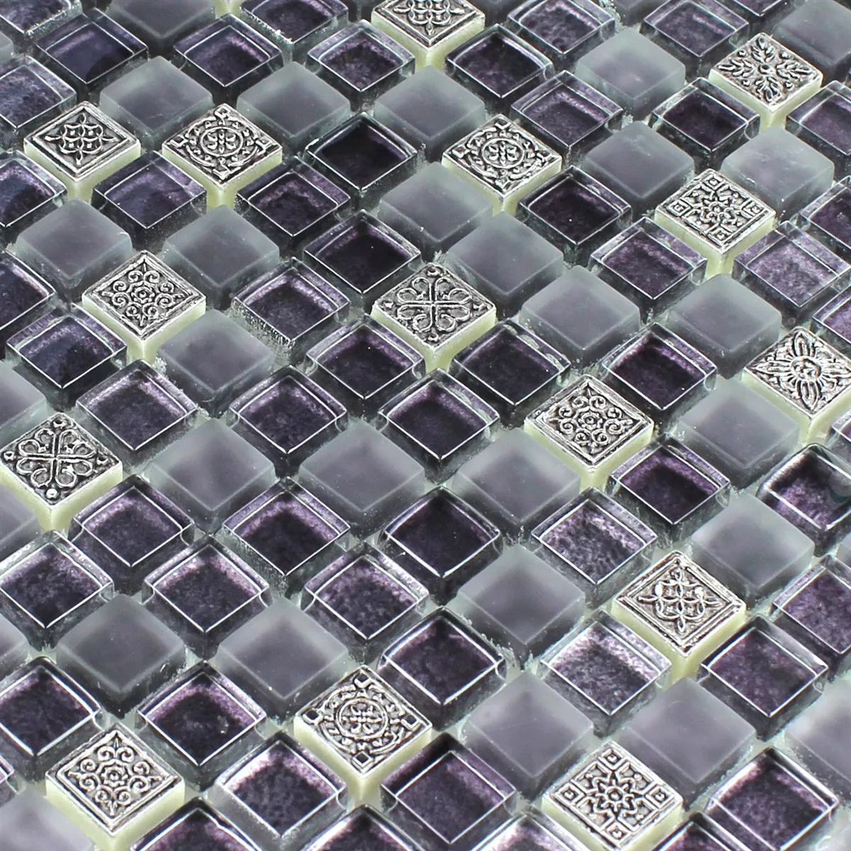 Sample Mozaïektegel Glas Natuursteen Ornament Purper Mix