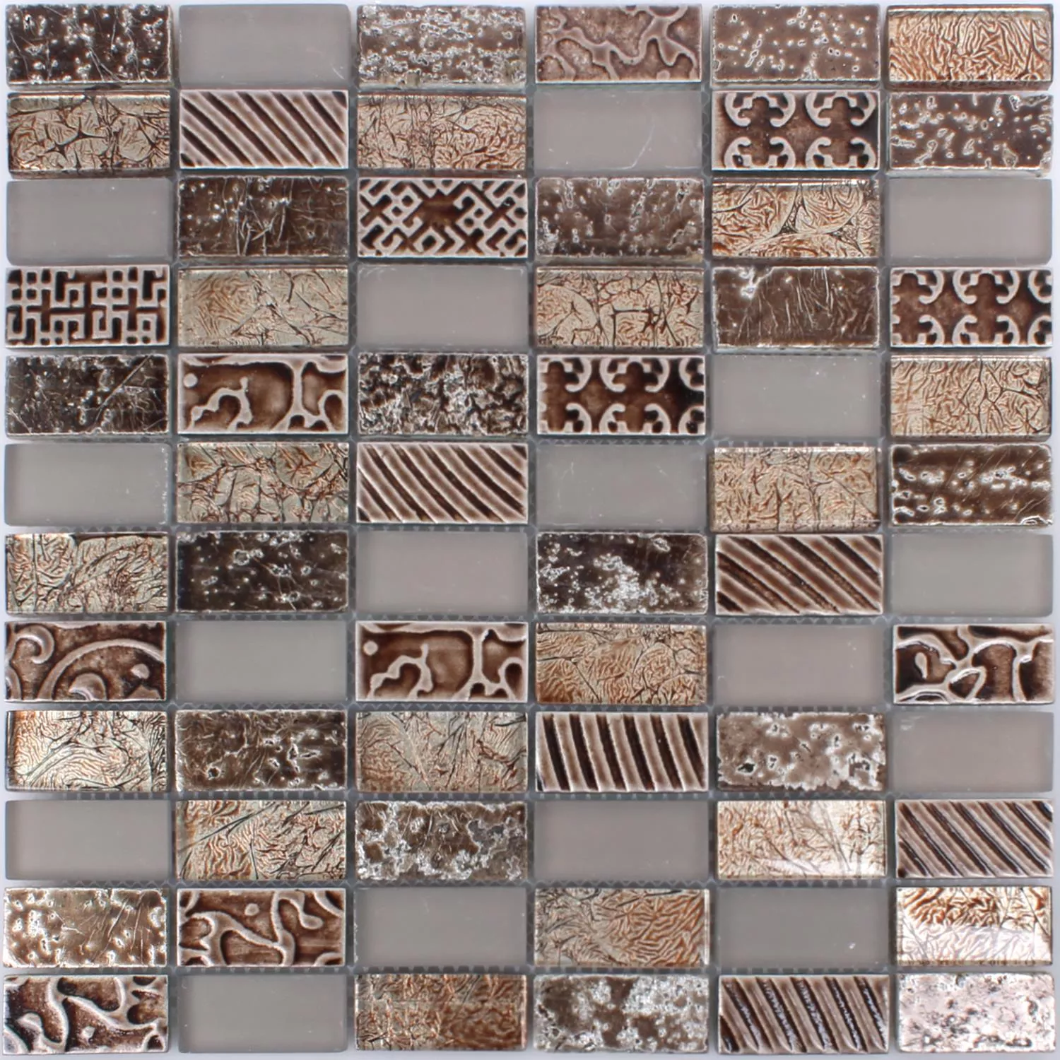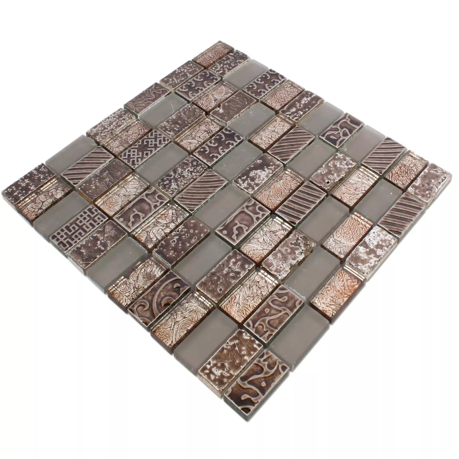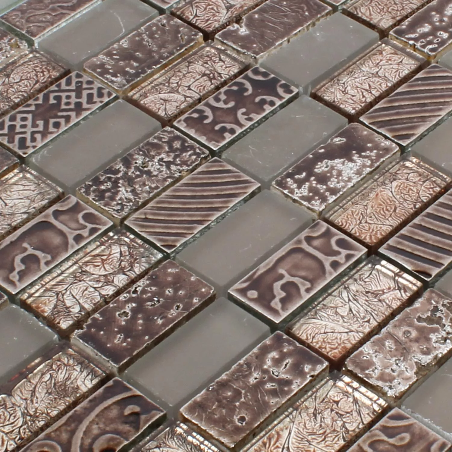 Sample Mozaïektegel Glas Natuursteen Piroshka Bruin