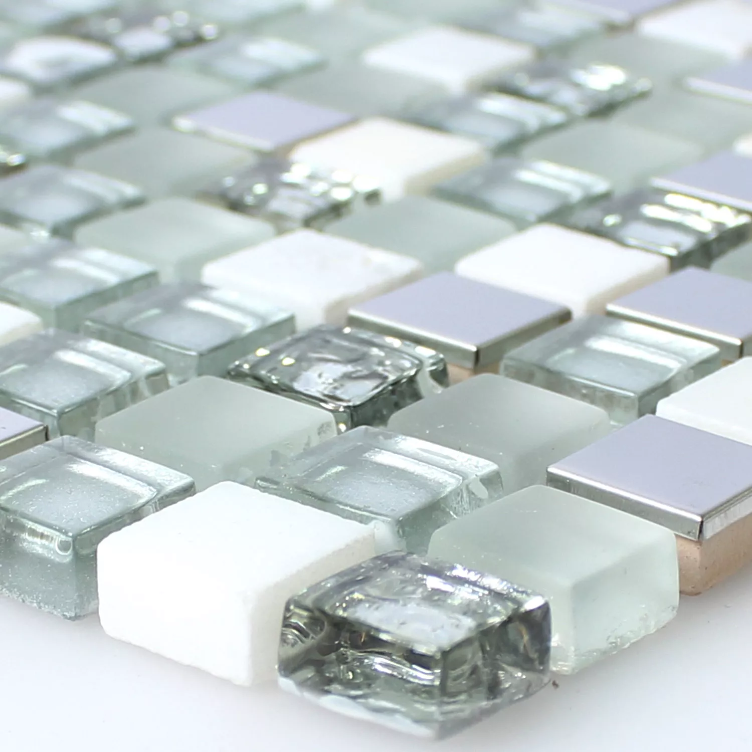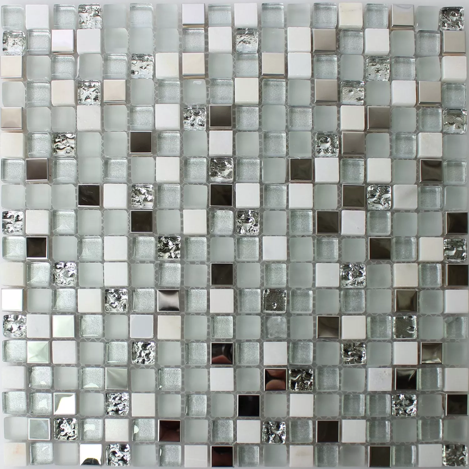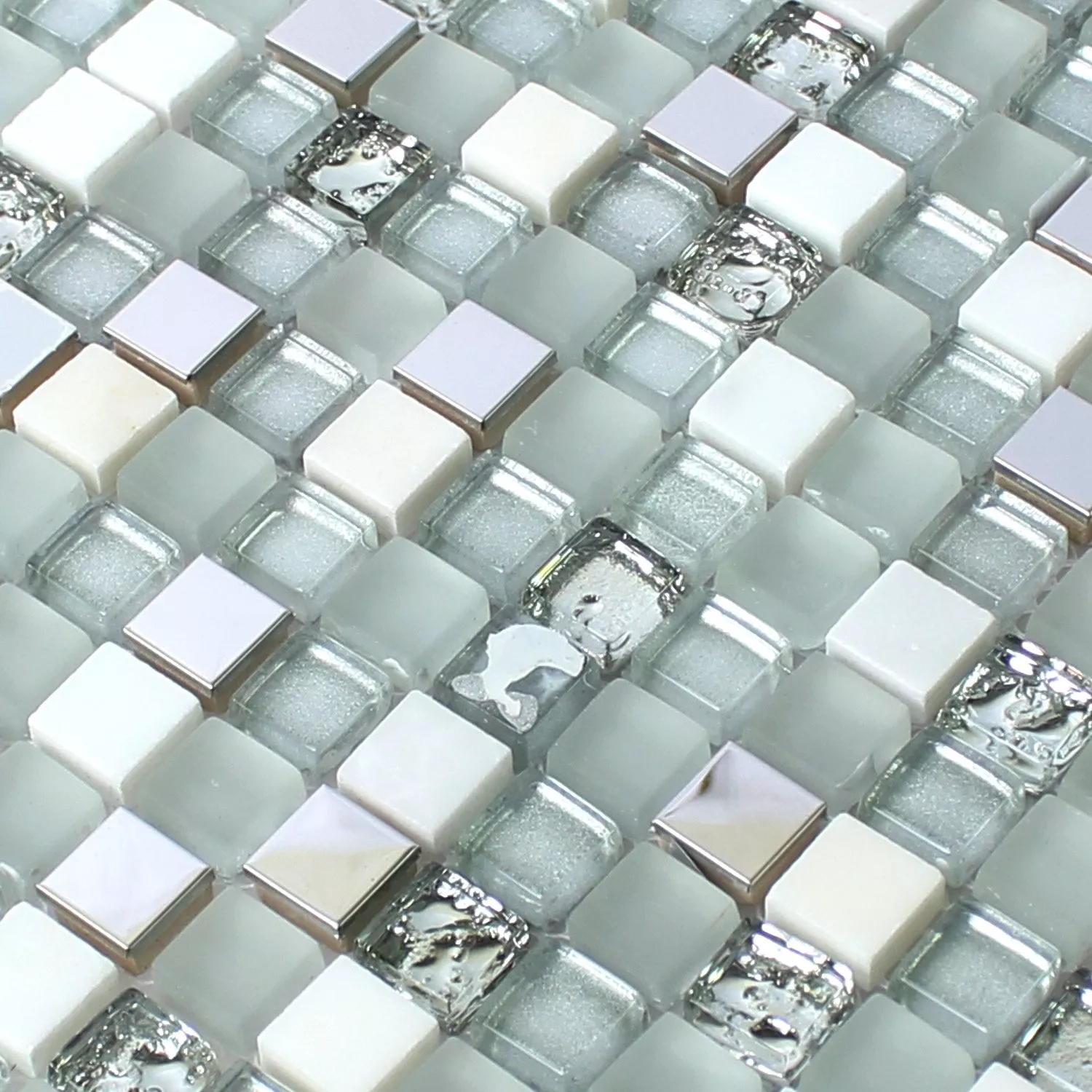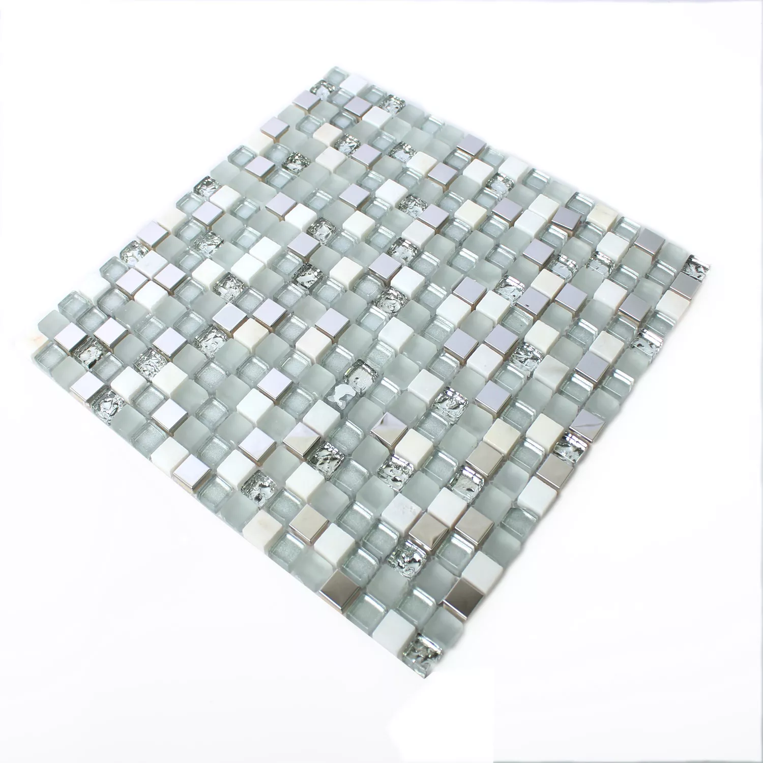 Sample Mozaïektegel Glas Roestvrij Staal Natuursteen Wit Zilver