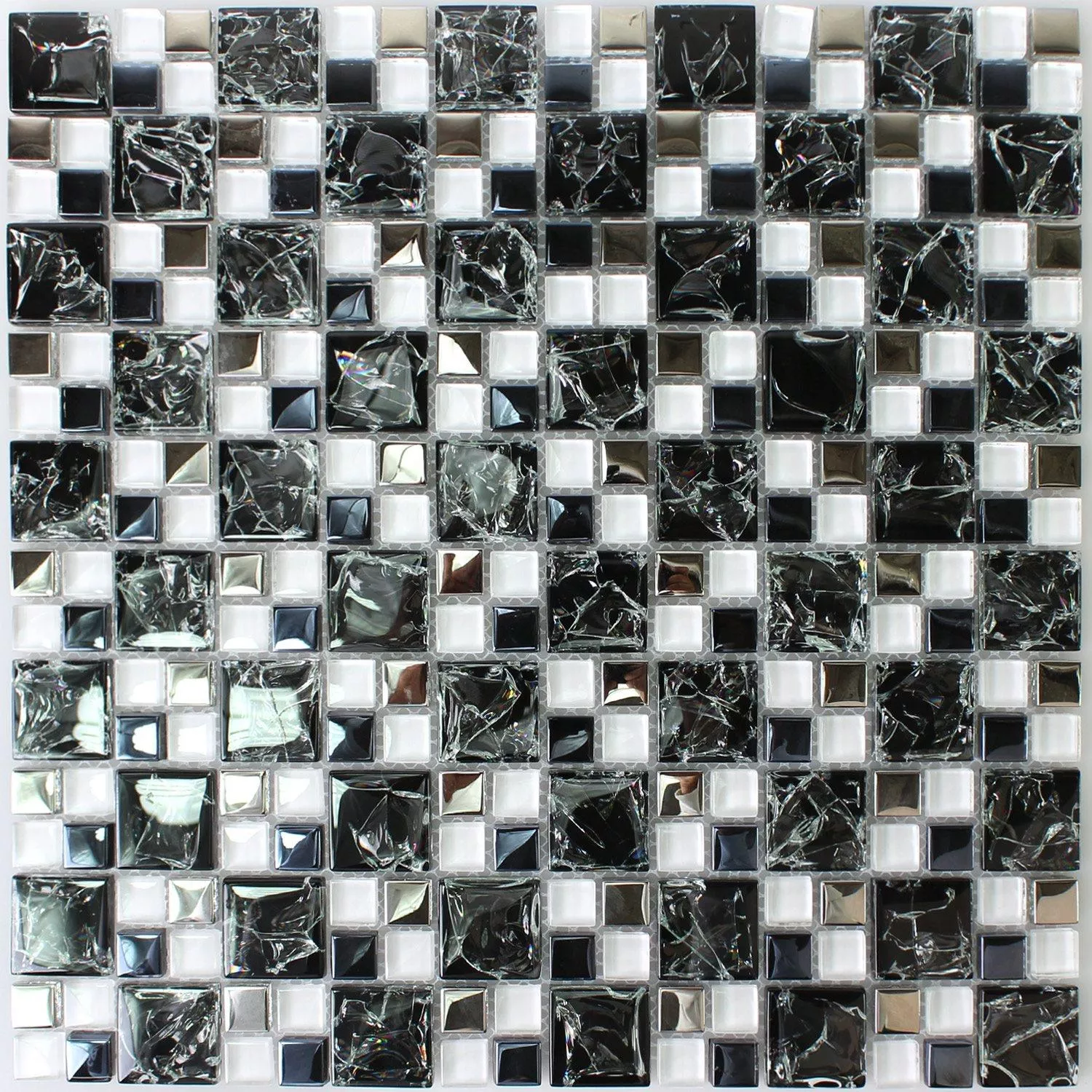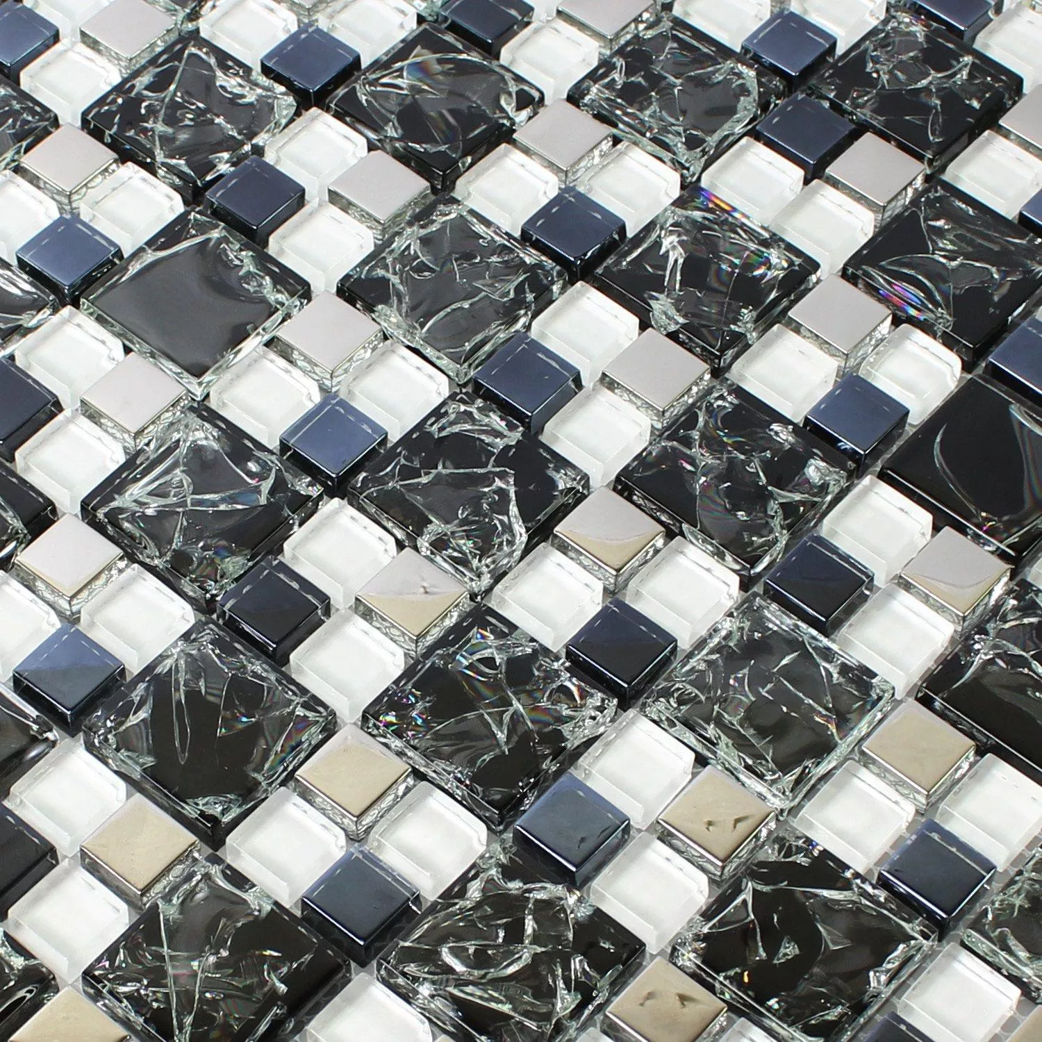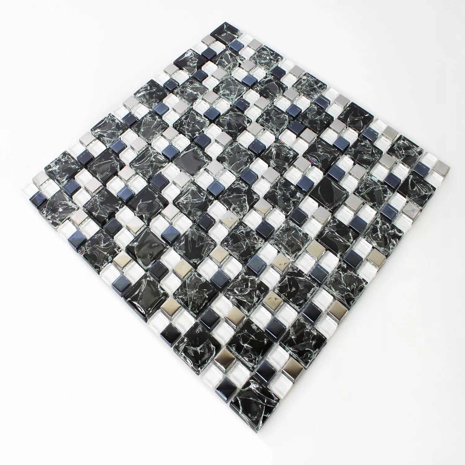 Sample Mozaïektegel Glas Roestvrij Staal Zwart Zilver Gebroken