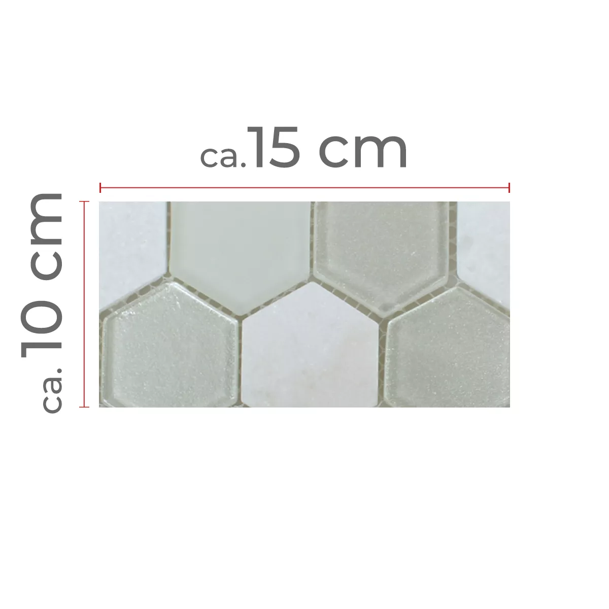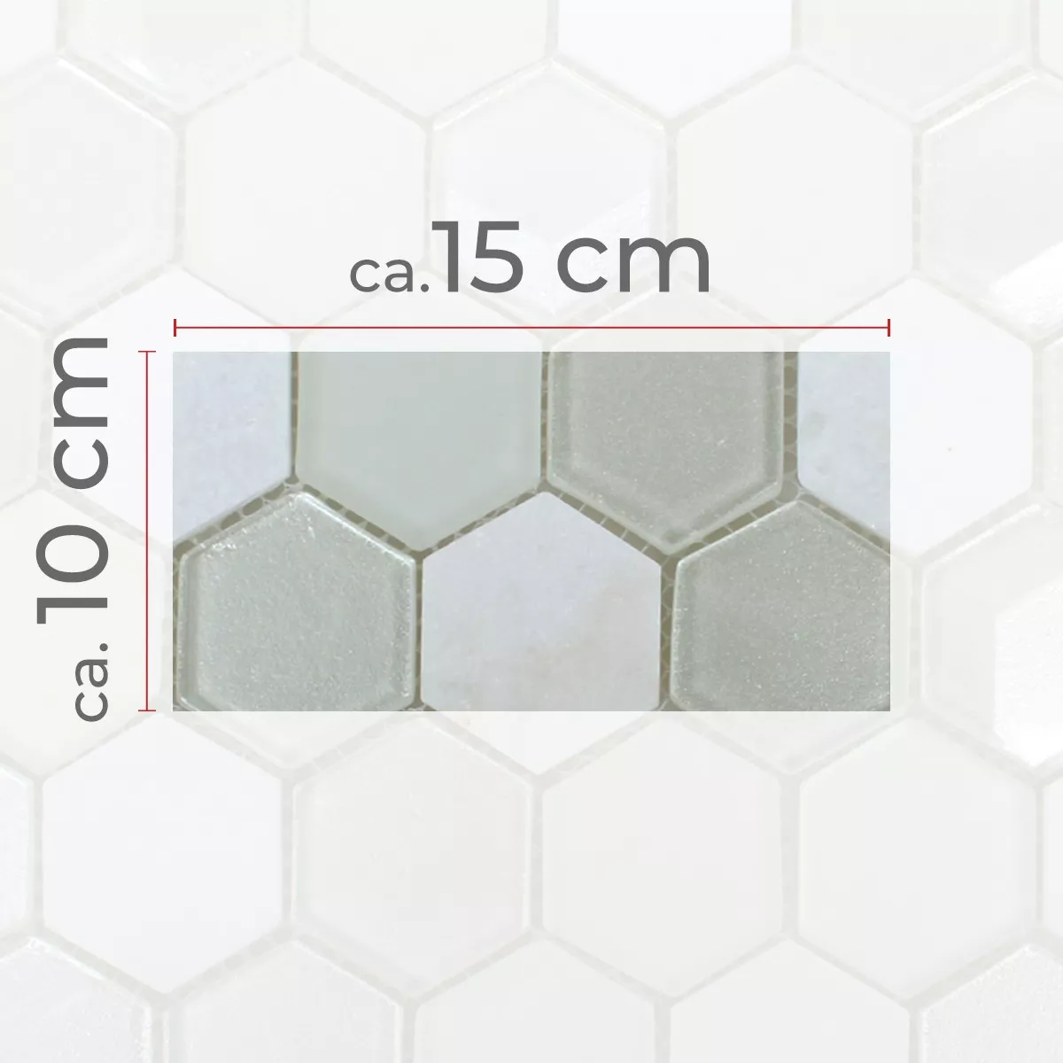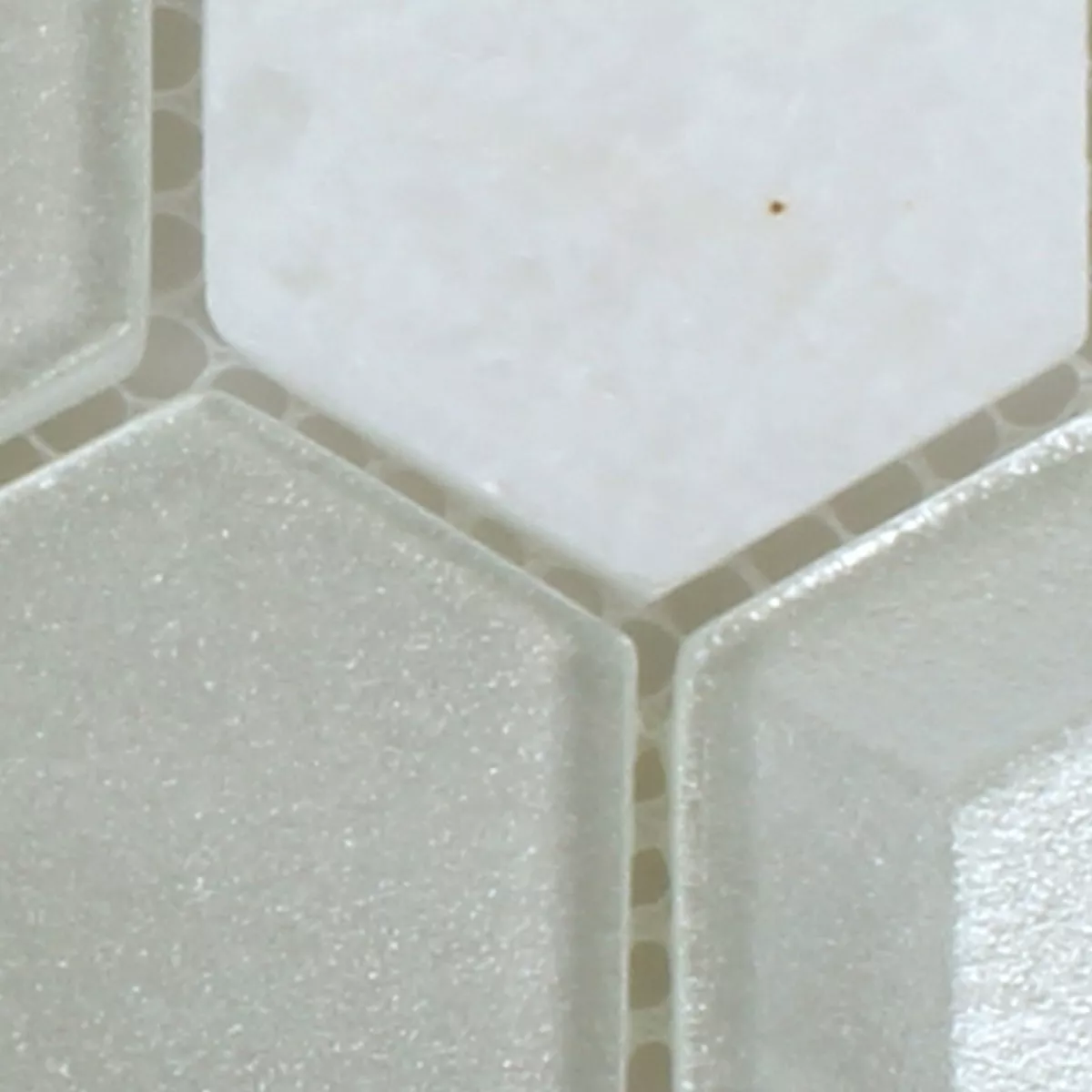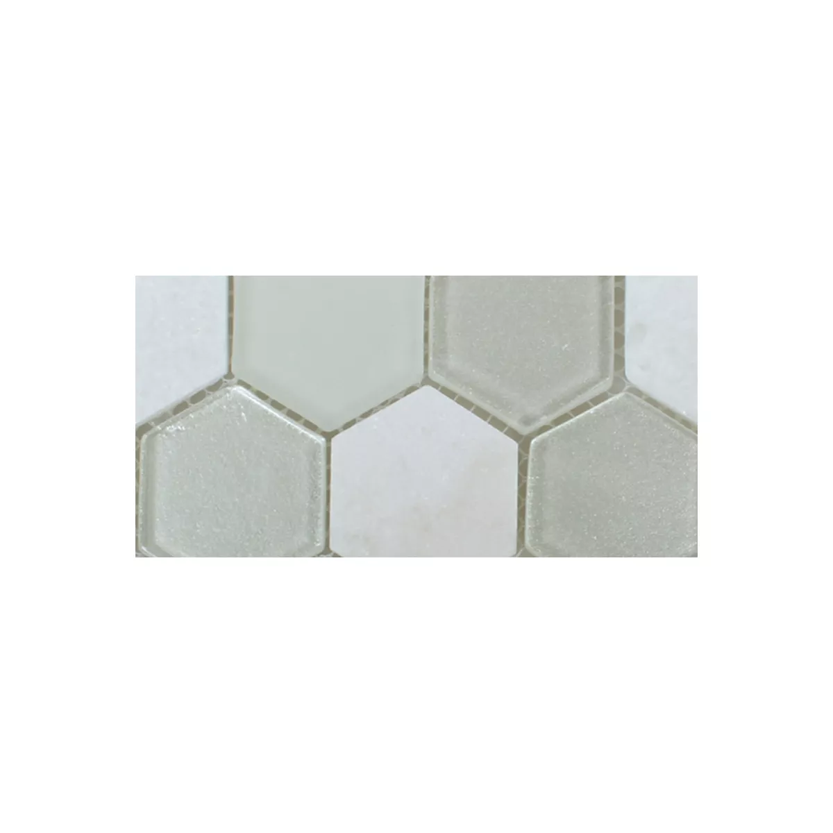Sample Mozaïektegel Hexagon Glas Natuursteen Wit 3D