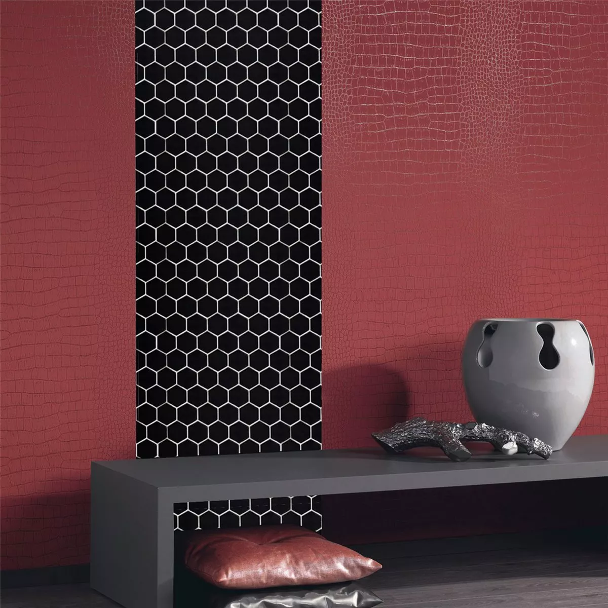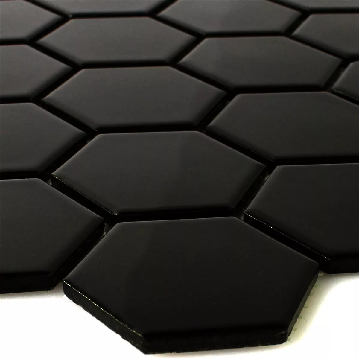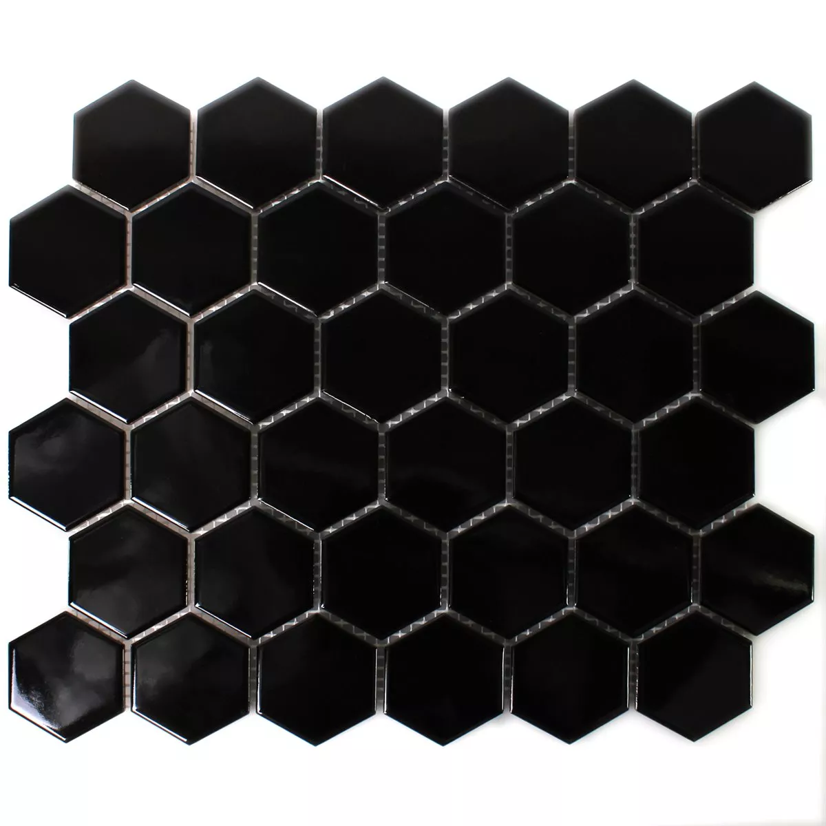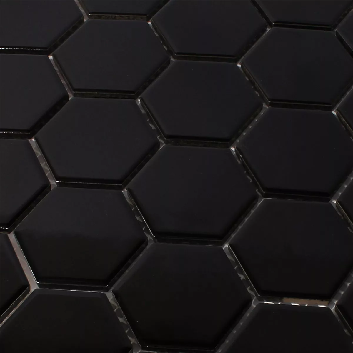 Sample Mozaïektegel Keramiek Hexagon Zwart Glanzend
