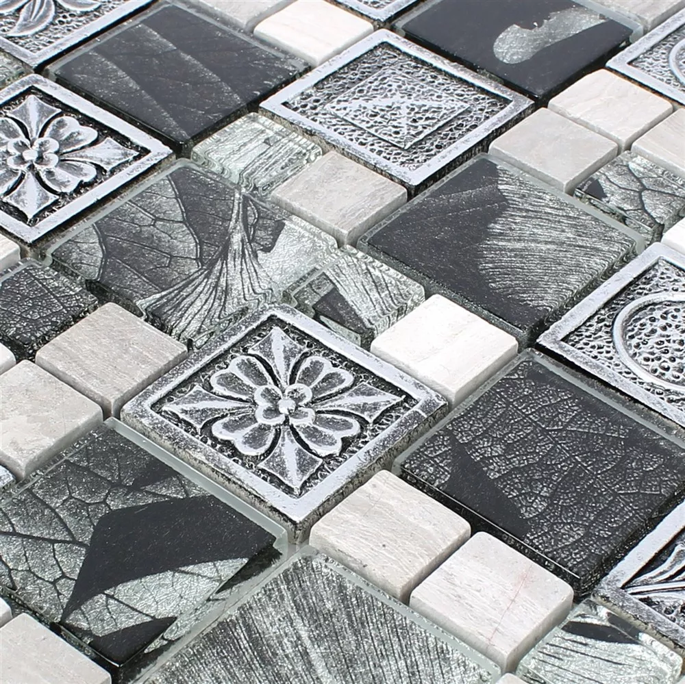 Sample Mozaïektegel Levanzo Glas Resin Ornament Mix Zilver