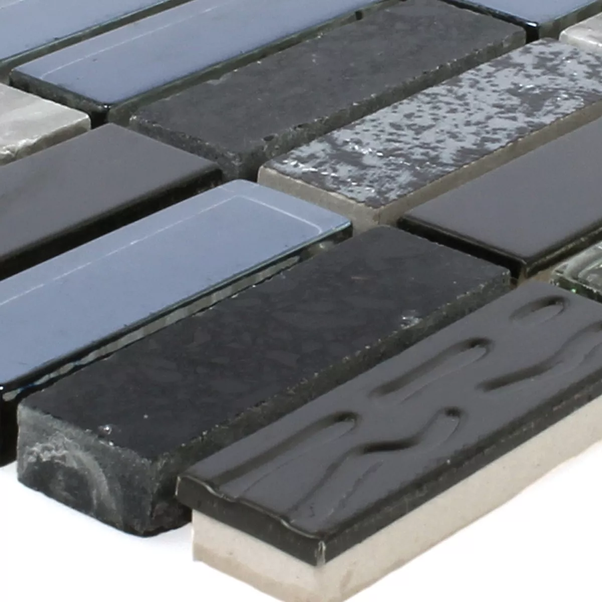 Sample Mozaïektegel Metaal Glas Natuursteen Zwart Mix