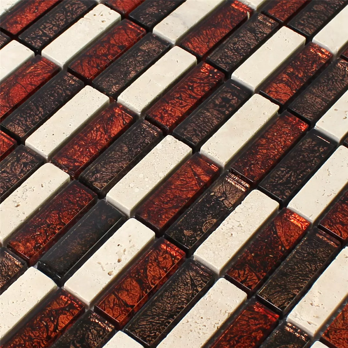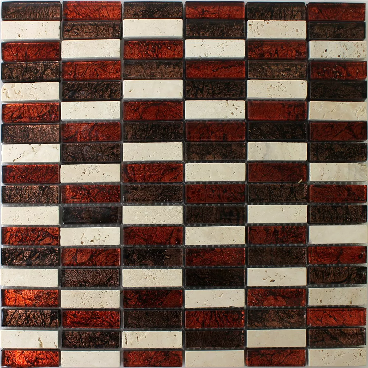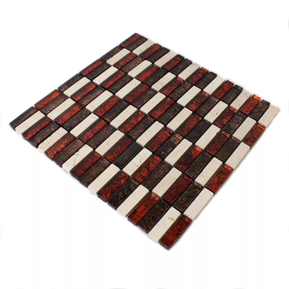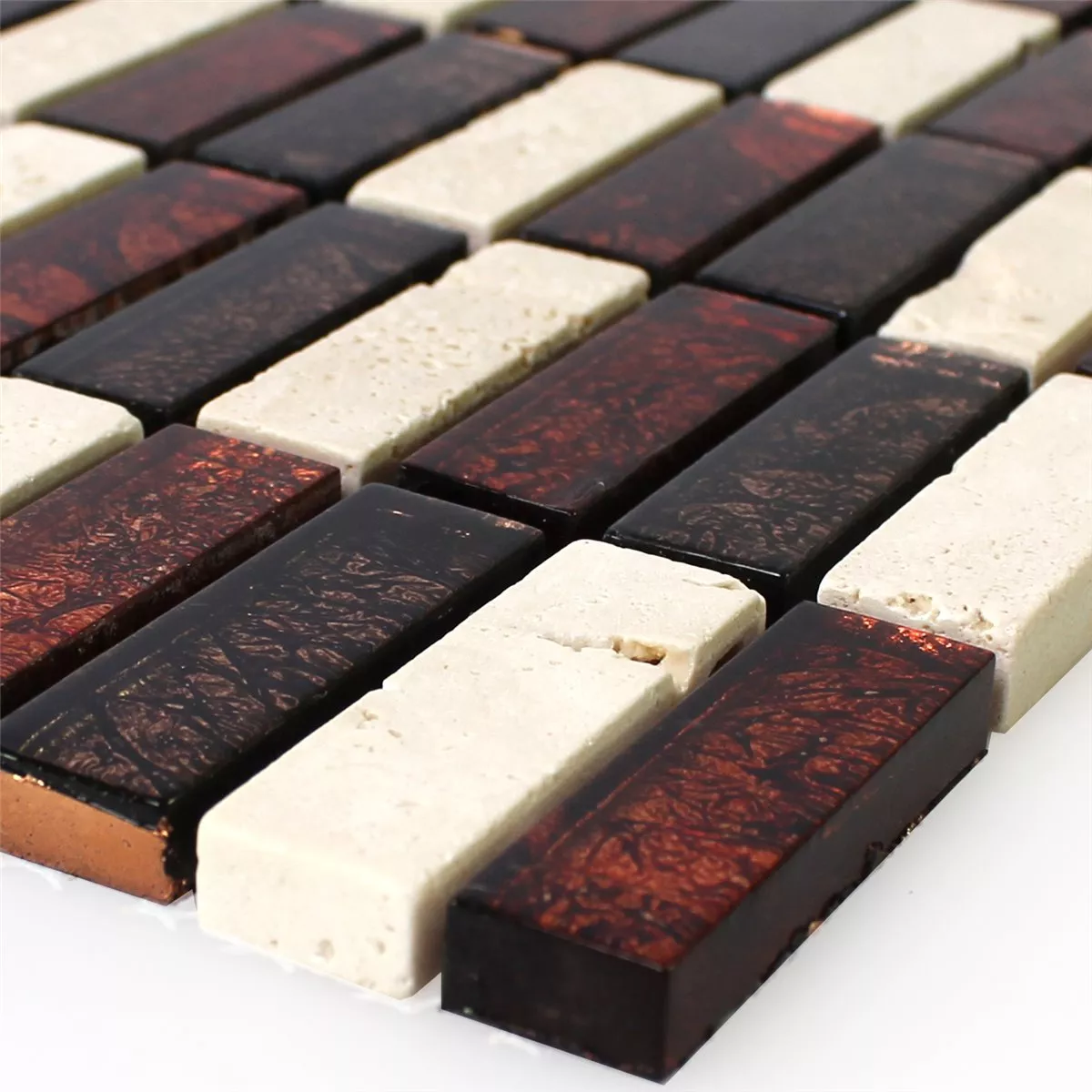 Sample Mozaïektegel Natuursteen Glas Root Bruin Beige Stick