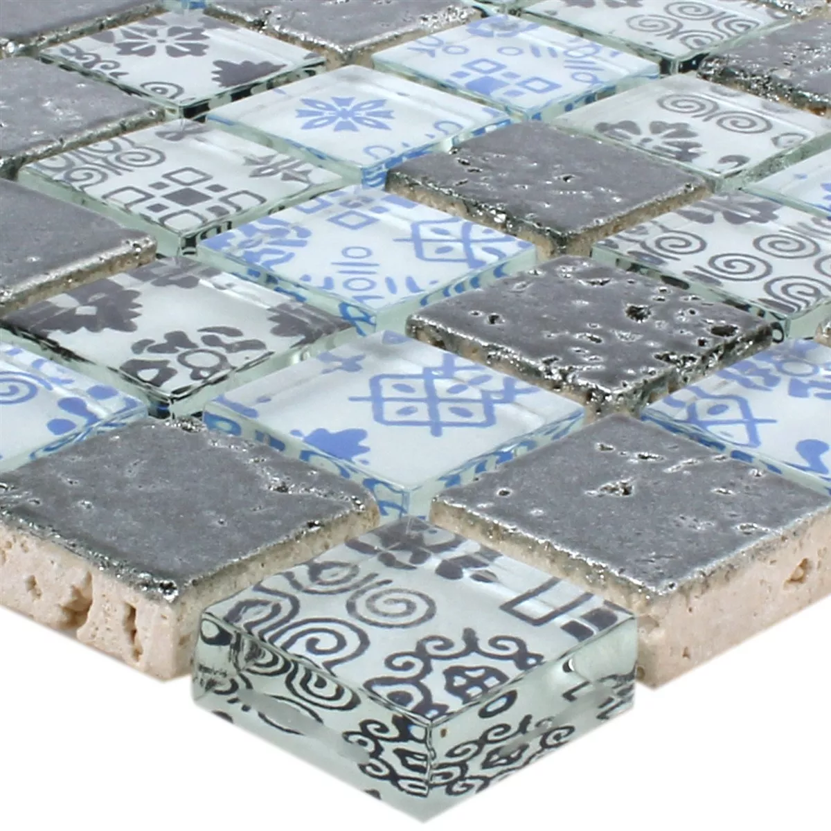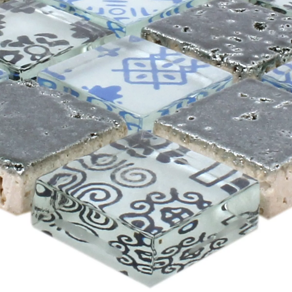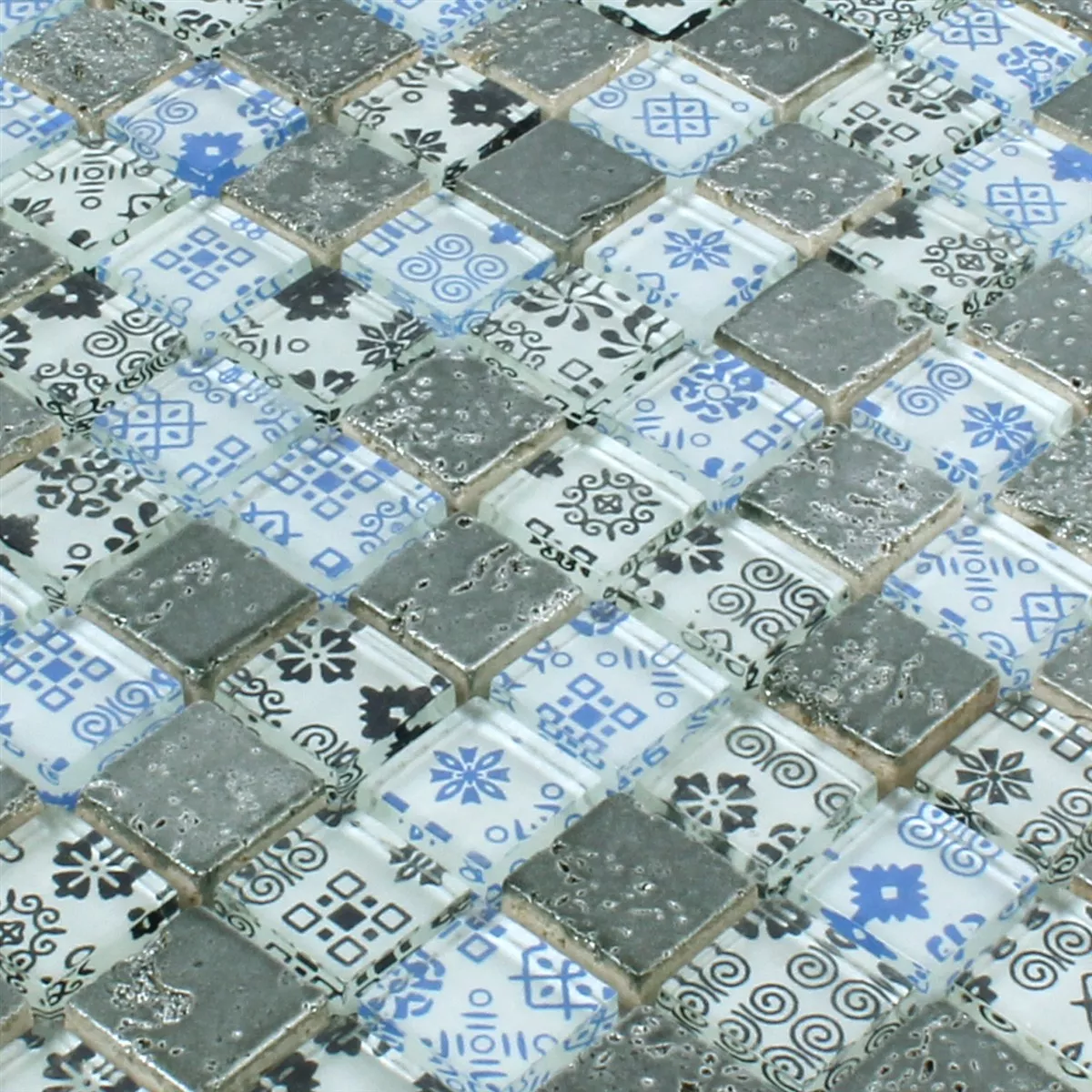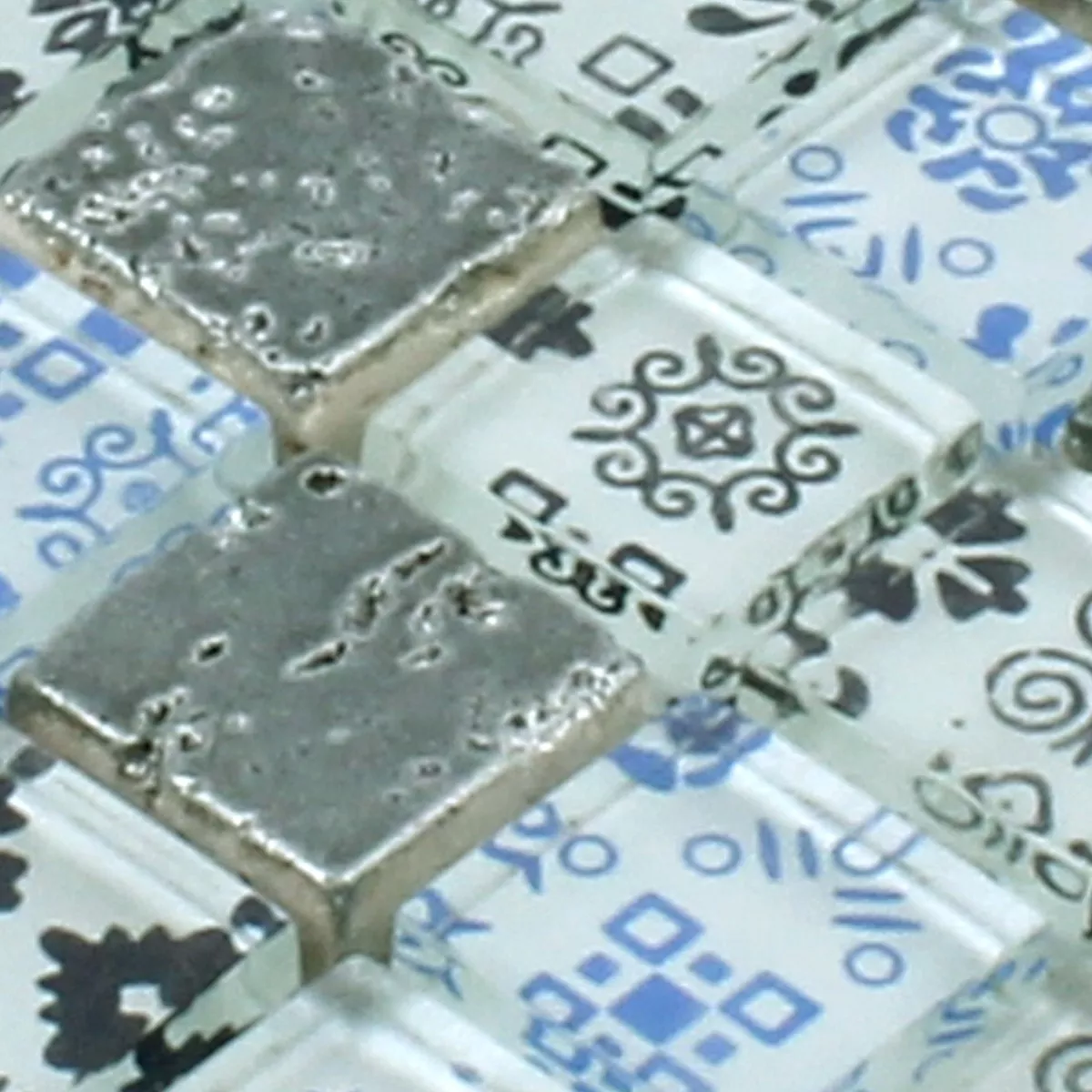 Sample Mozaïektegel Resin Glas Belmont Blauw Zilver