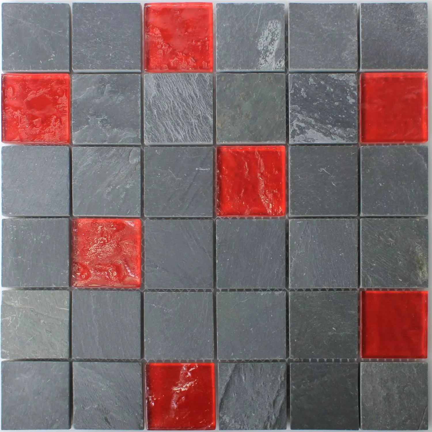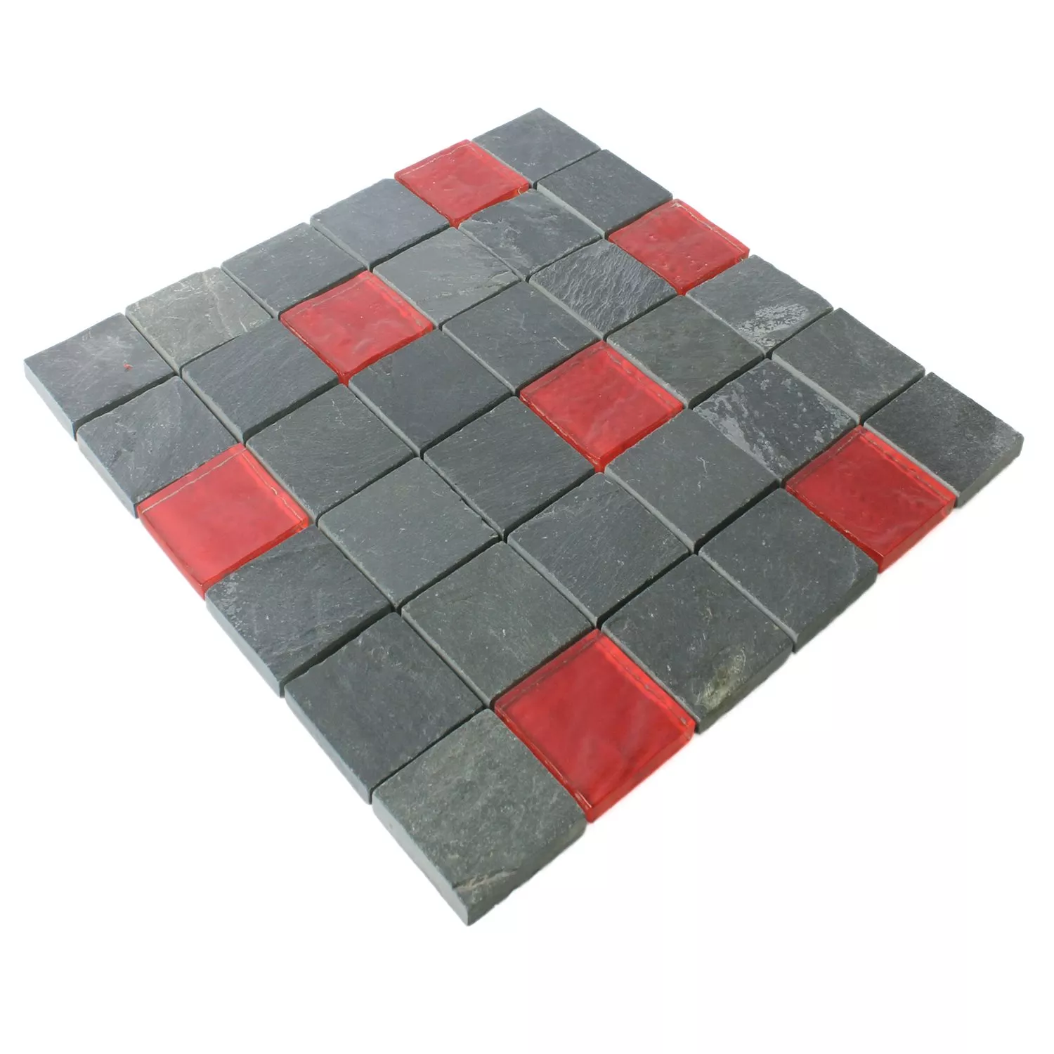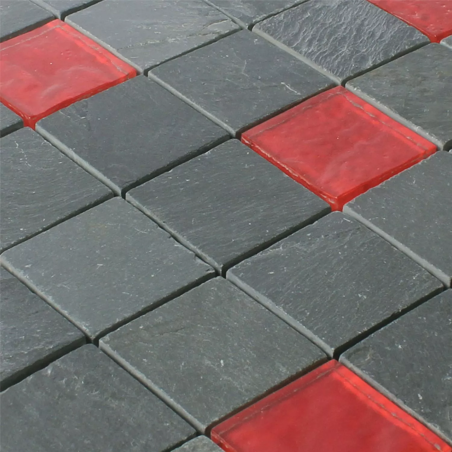 Sample Mozaïektegels Dragon Leisteen Glas Mix Zwart Rood
