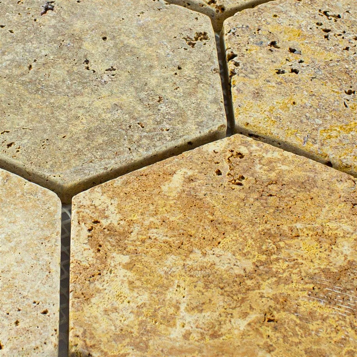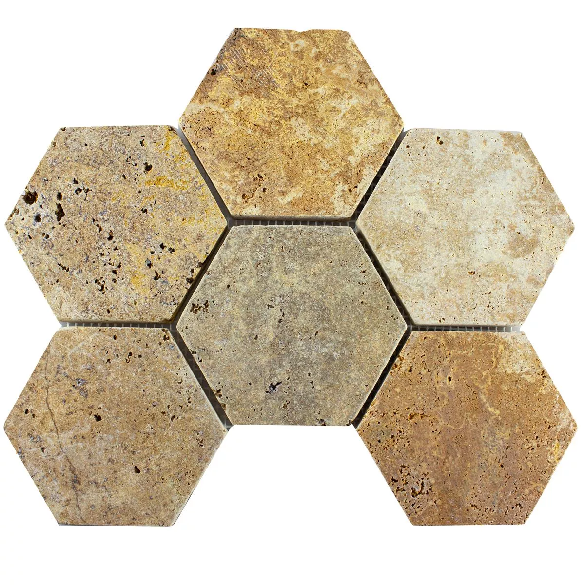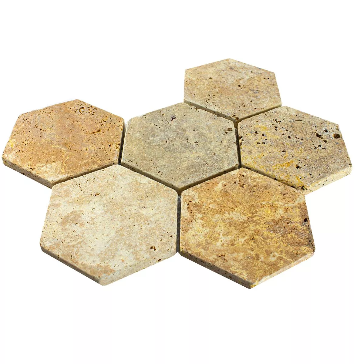 Sample Travertin Natuursteen Mozaïektegel Mercado Zeshoek Goud