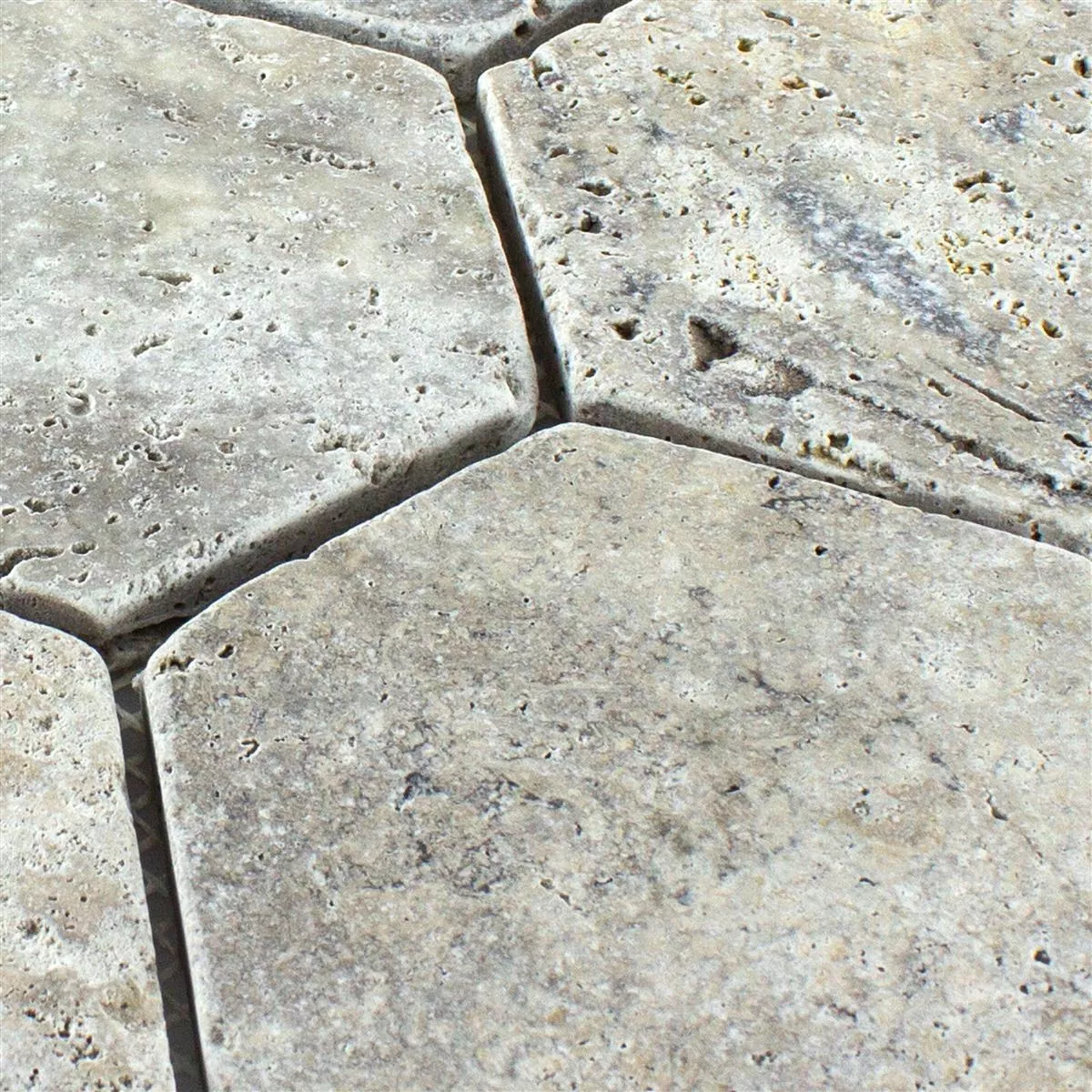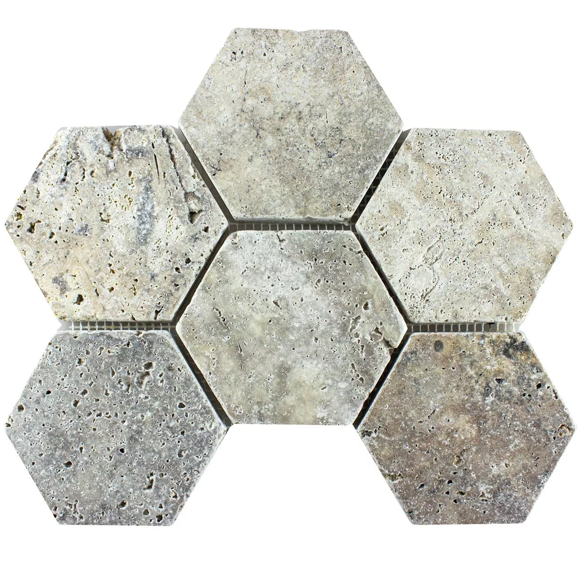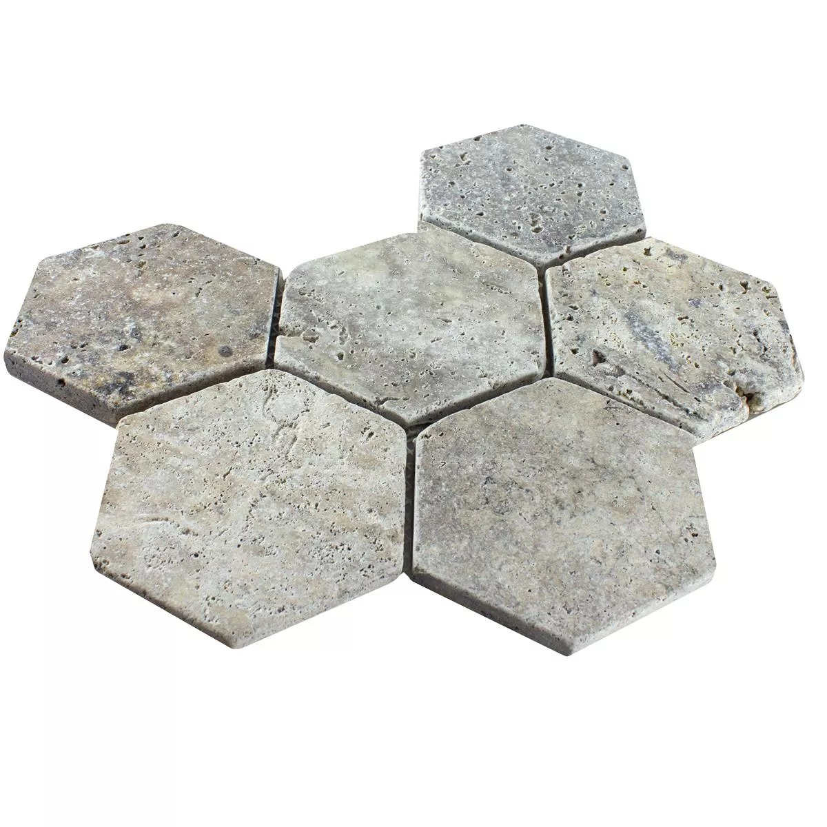Sample Travertin Natuursteen Mozaïektegel Mercado Zeshoek Zilver
