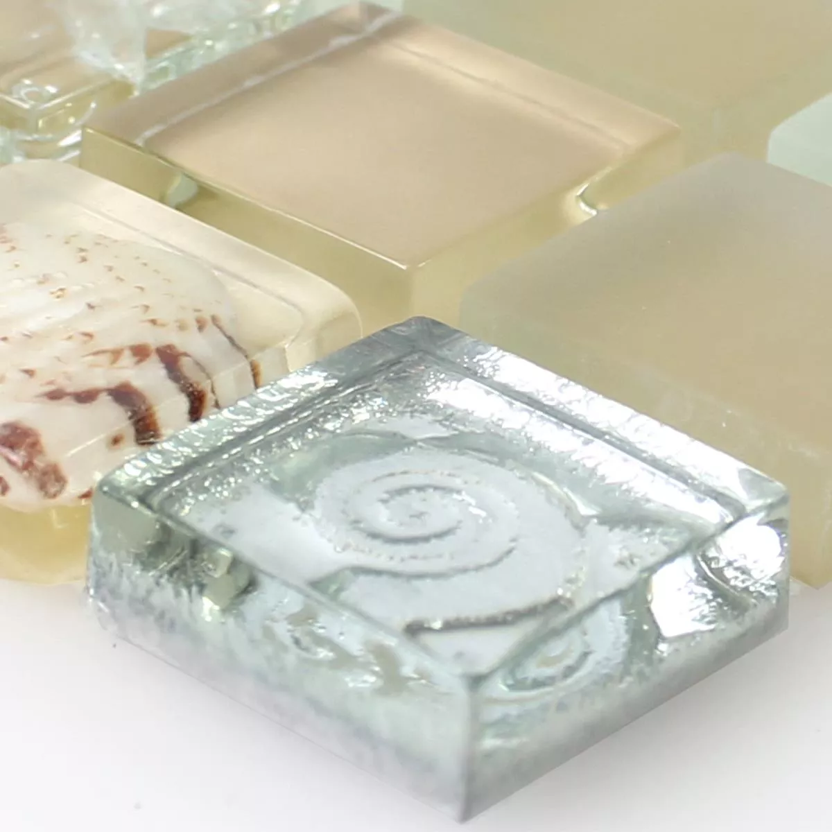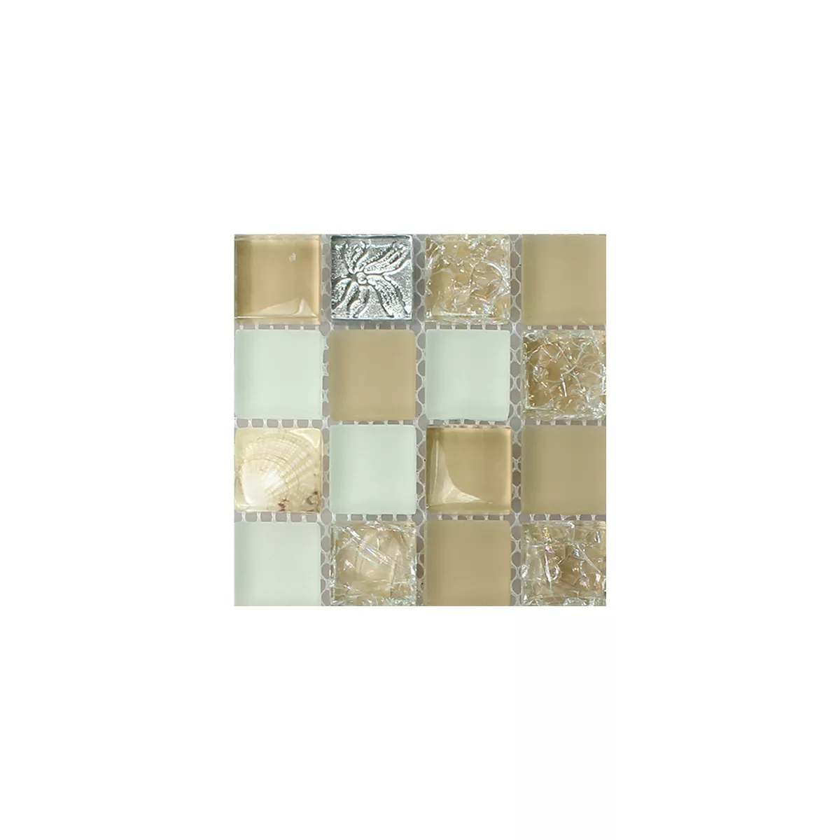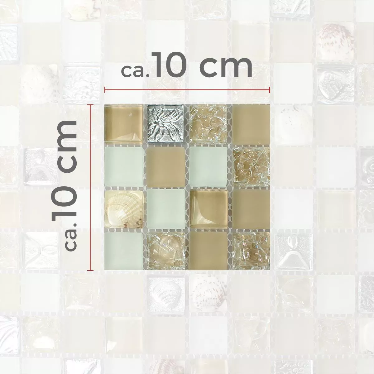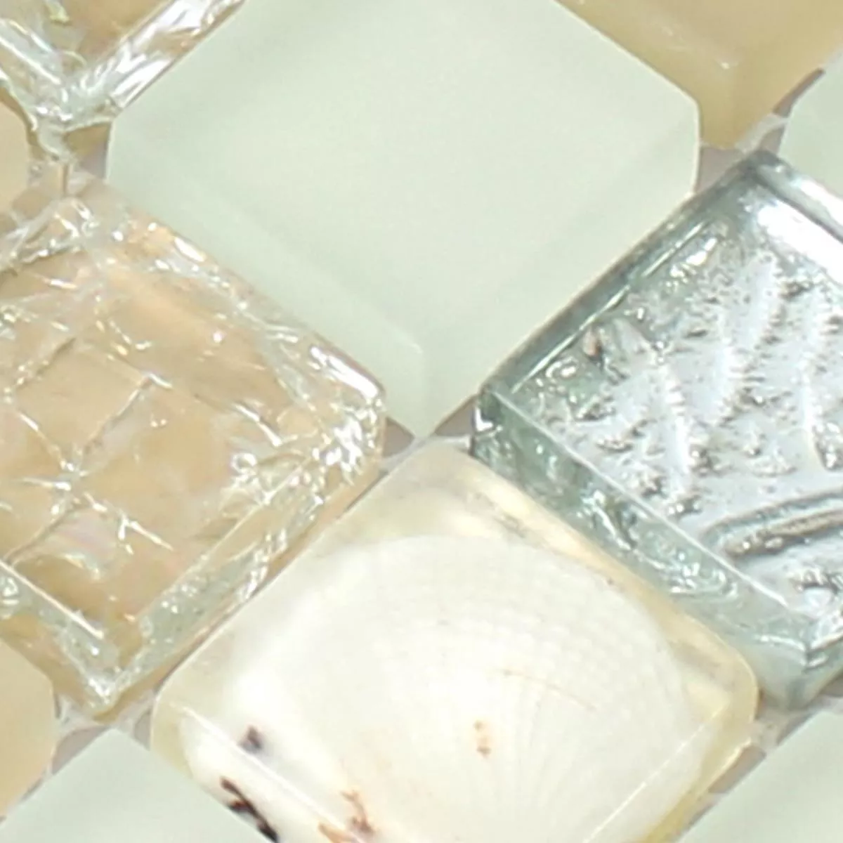 Sample van Glas Schelp Mozaïektegel Byron Beige Mix