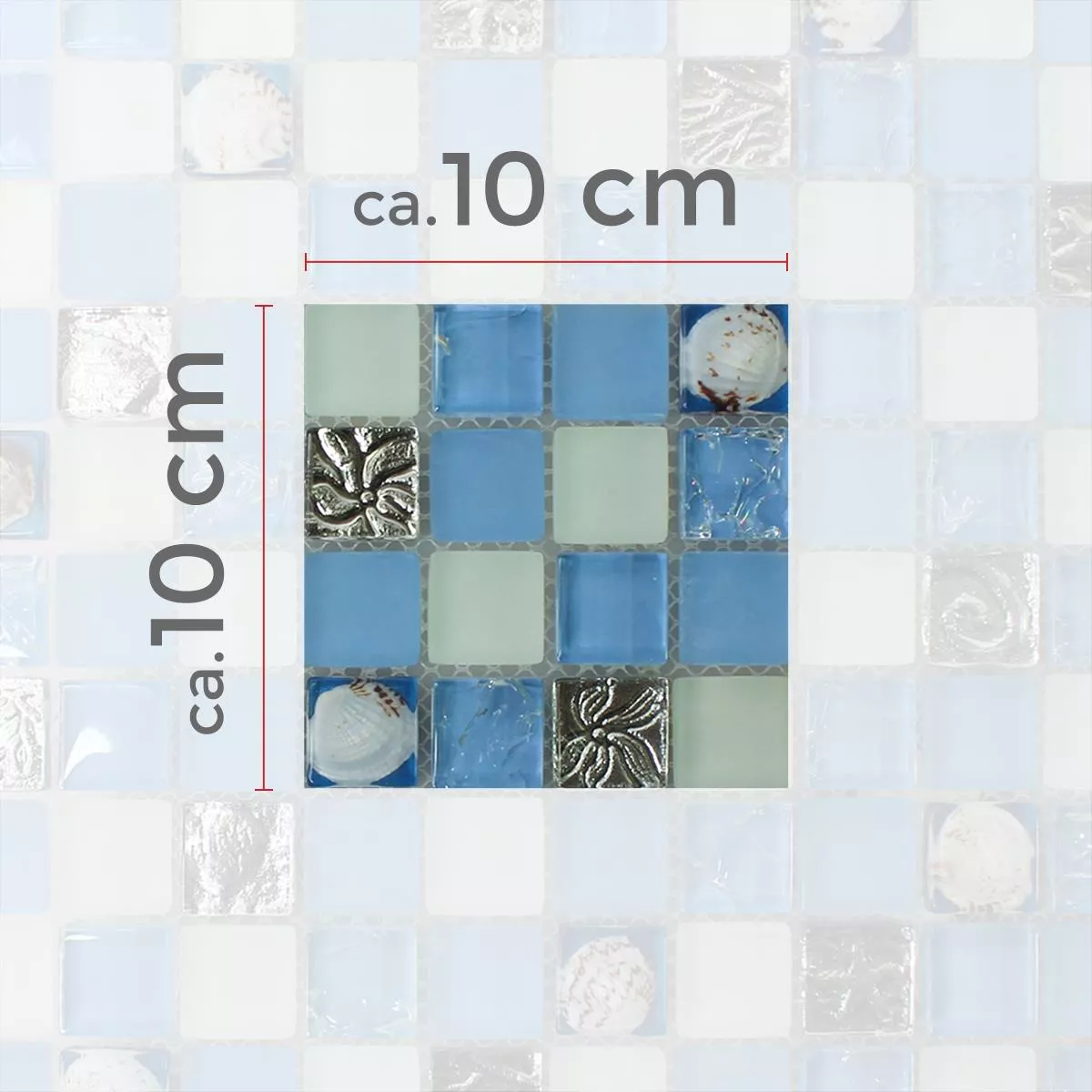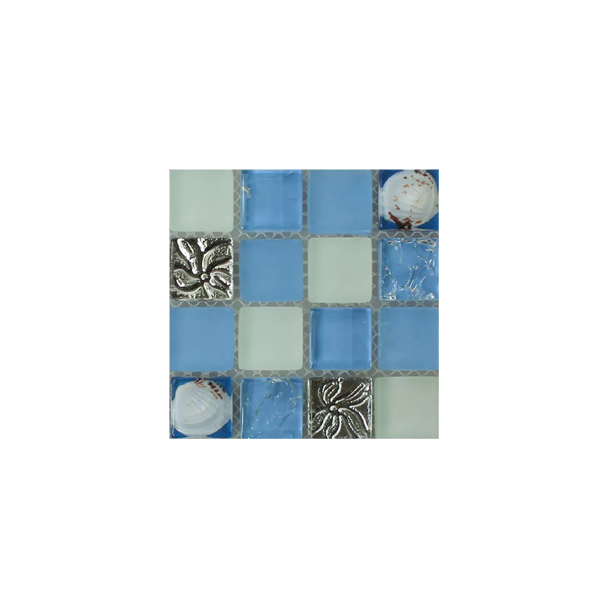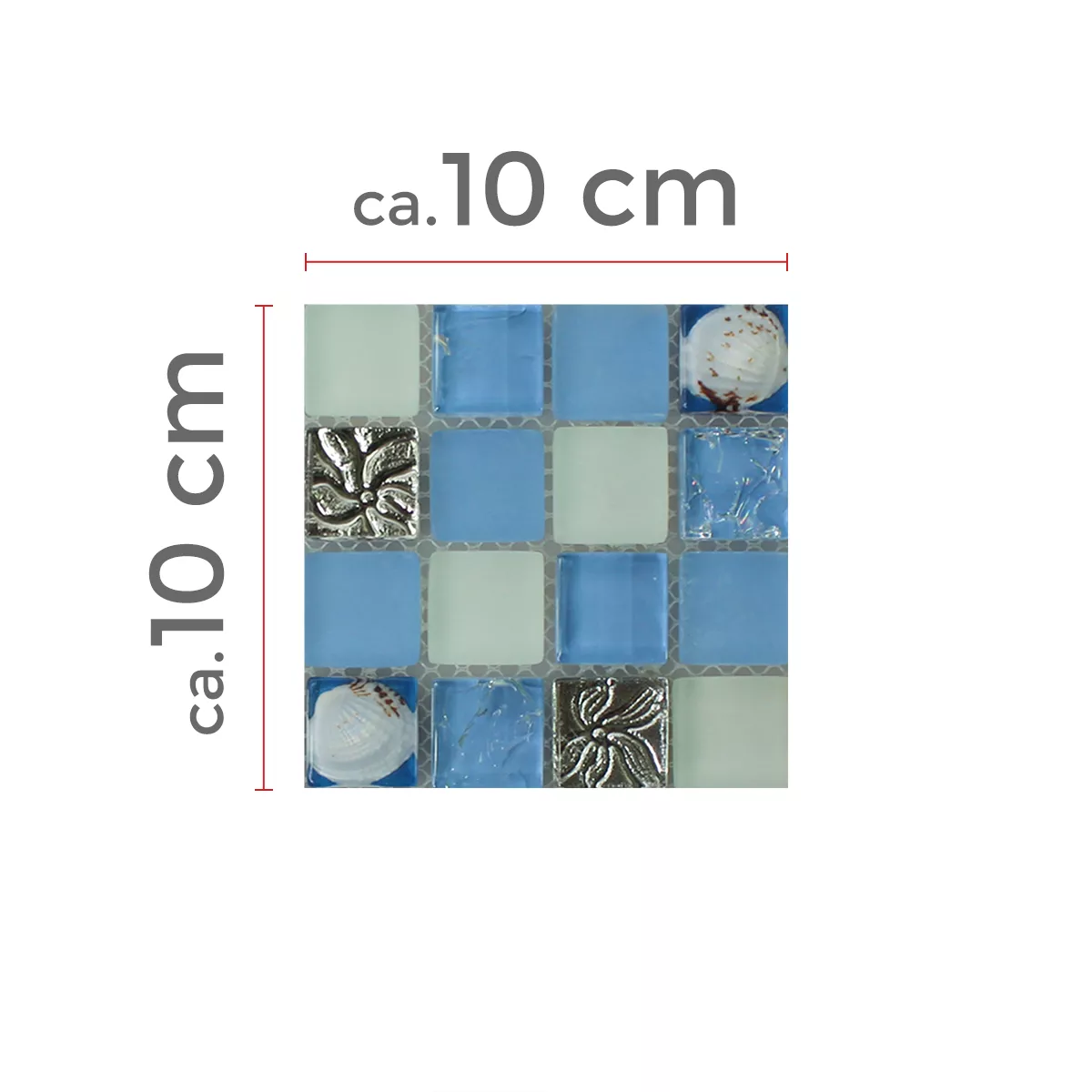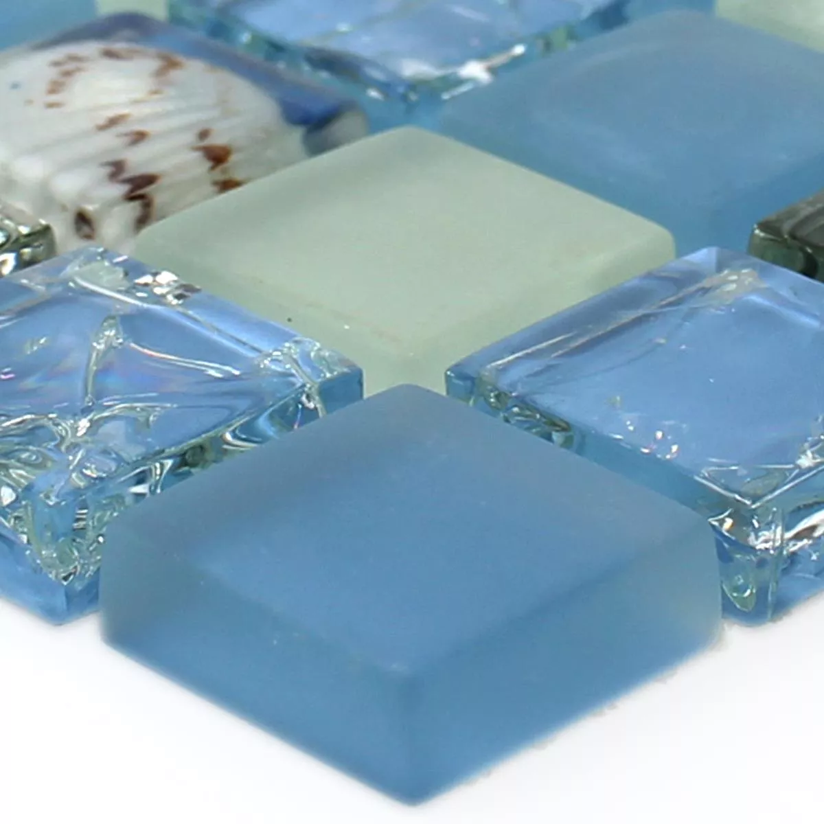 Sample van Glas Schelp Mozaïektegel Byron Blauw Mix