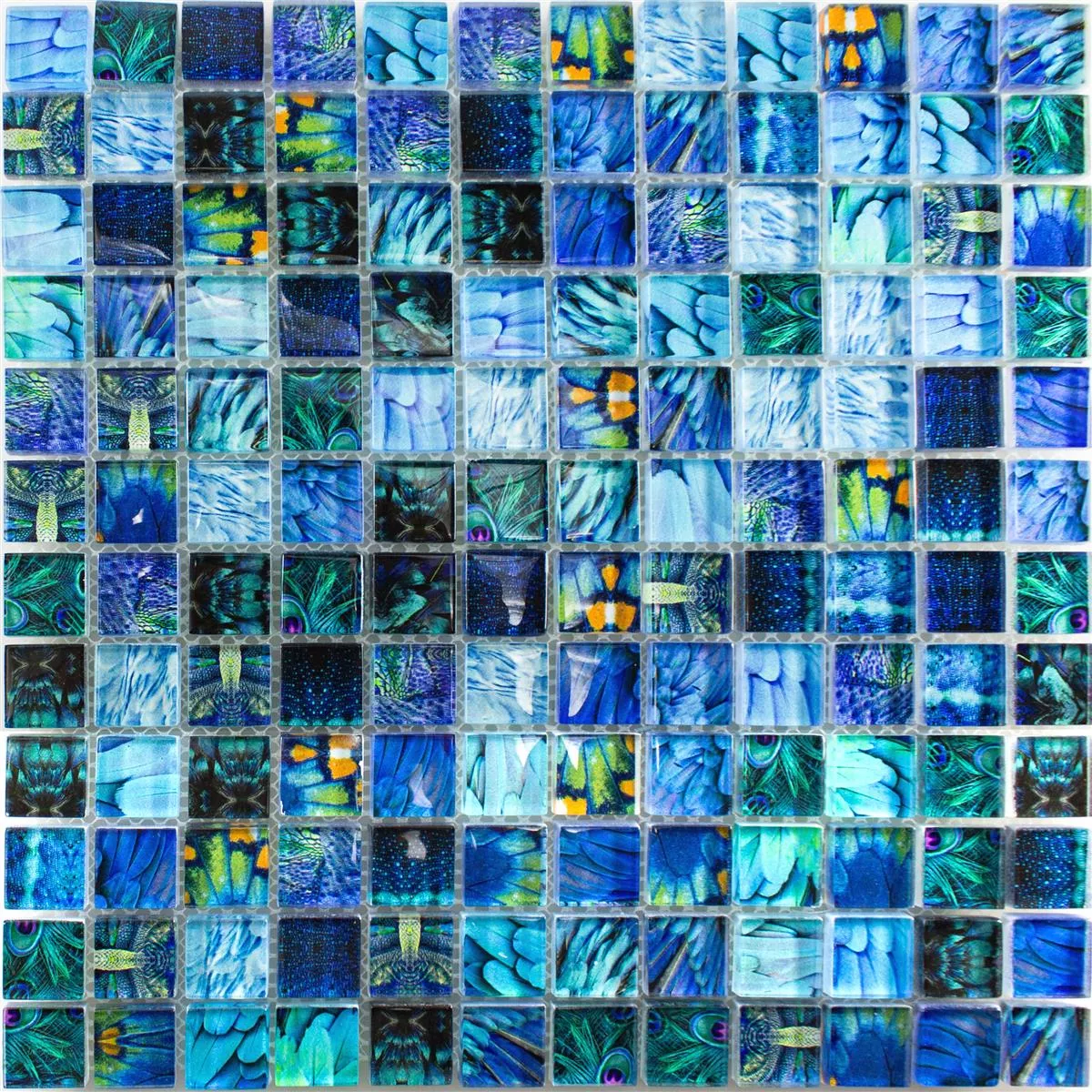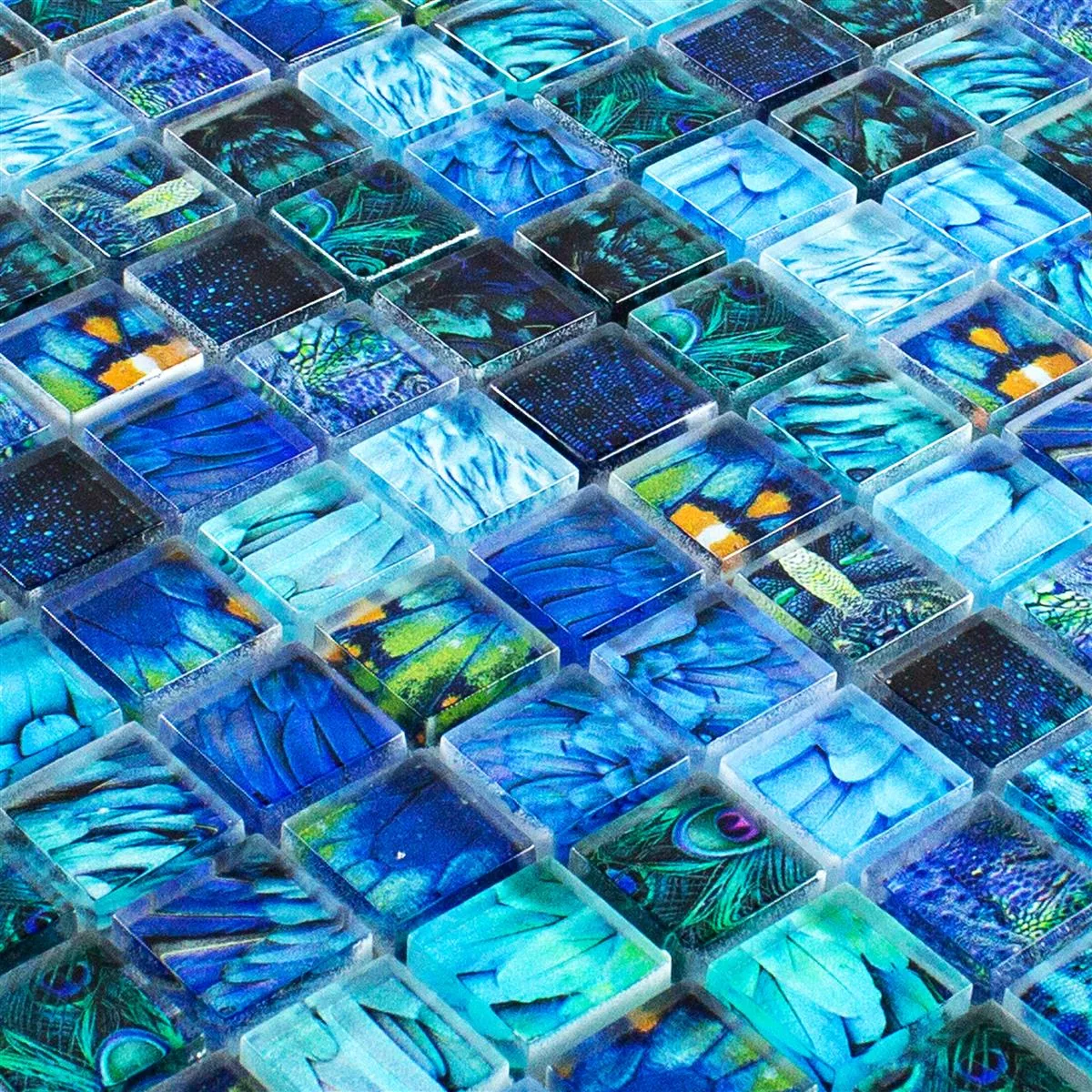 Onze glasmozaïektegels uit de Peafowl-serie zijn een elegante keuze voor elke kamer in huis. Deze vierkante tegels zijn waterbestendig en glanzend, waardoor ze ideaal zijn voor vochtige ruimtes zoals de badkamer, wasruimte of keuken.