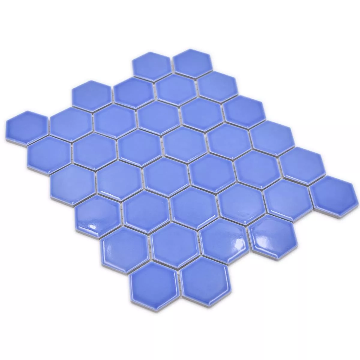 Sample van Keramiek Mozaïek Salomon Hexagon Lichtblauw H51