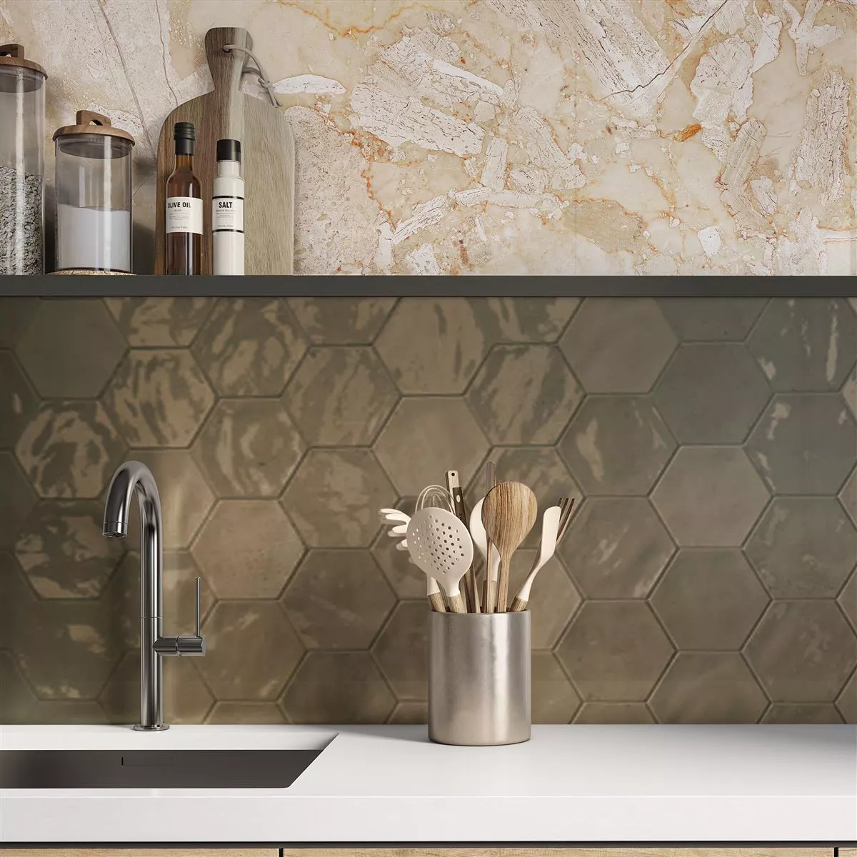 Sample Wandtegels Arosa Glanzend Gegolfd Hexagon Bruin 17,3x15cm