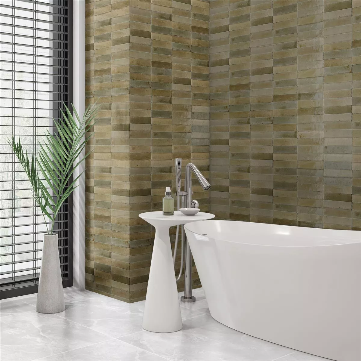Sample Wandtegels Laguna Glanzend Gegolfd Beige 6x24cm
