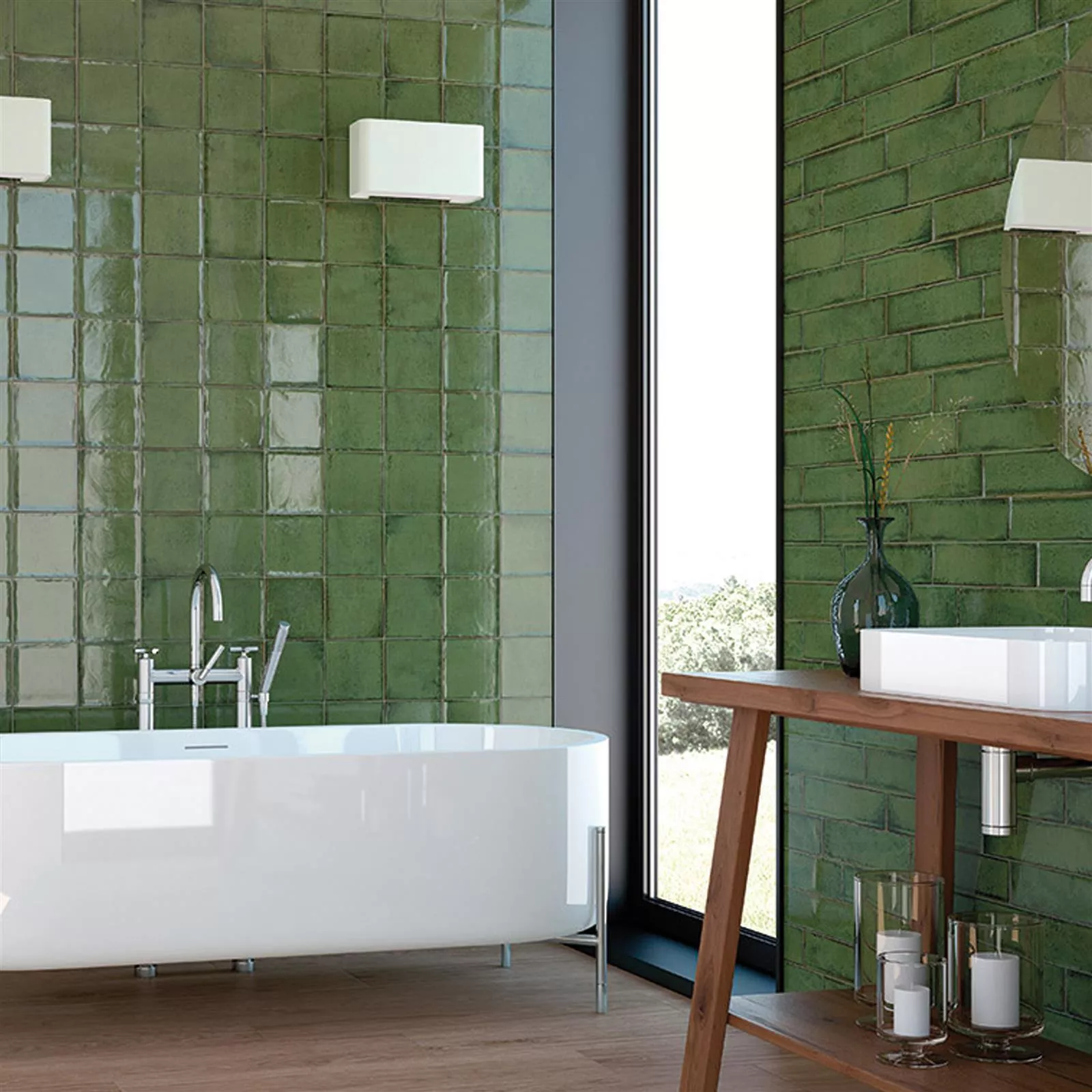 Sample Wandtegels Maestro Gegolfd Glanzend Olijfgroen 15x15cm