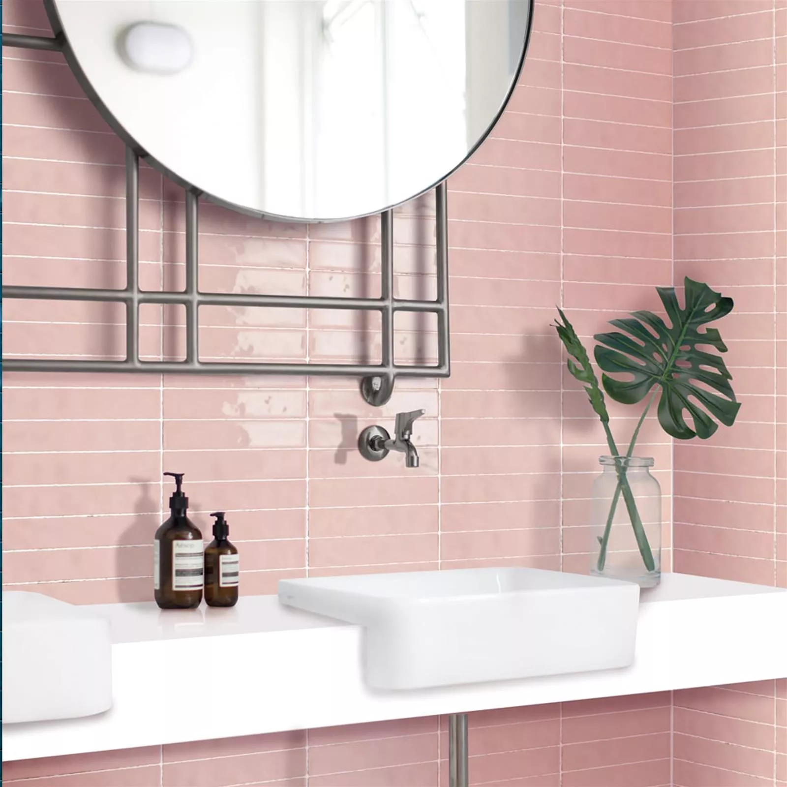 Sample Wandtegels Montreal Gegolfd Roze 5x25cm