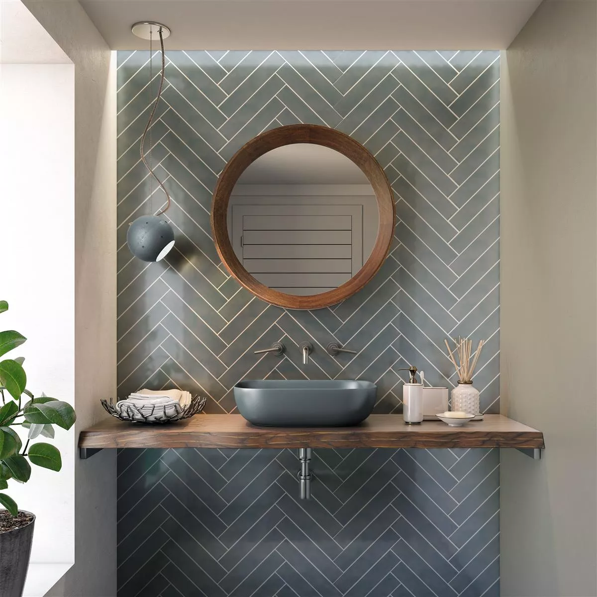 Sample Wandtegels Tamaris Flora Glanzend Gegolfd Lichtblauw 5x25cm