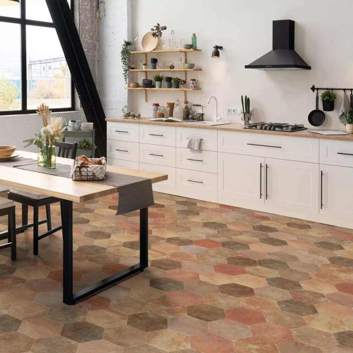 De Santiago vloertegel is verkrijgbaar in de kleur Cotto en brengt warmte en elegantie in elke ruimte. Of het nu in de woonkamer, keuken of badkamer is, deze tegel past perfect bij uw stijl en behoeften.