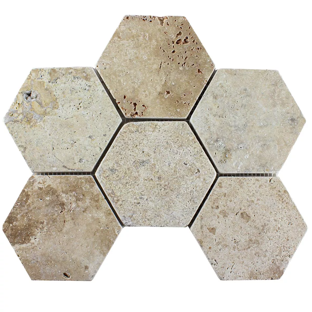 Travertin Natuursteen Mozaïektegel Mercado Zeshoek Beige