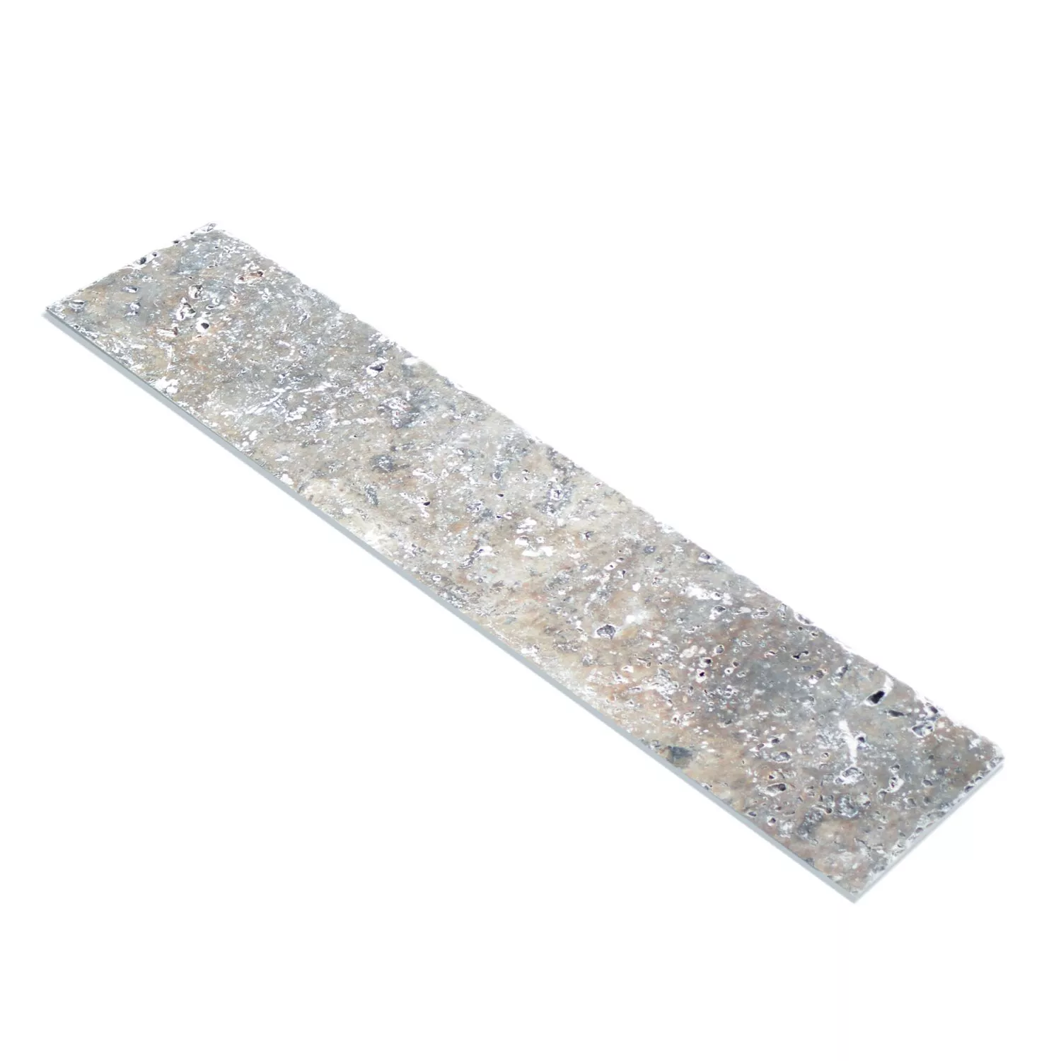 Deze natuursteen tegelbasis Nestor Silver van het robuuste natuurmateriaal travertijn wordt direct uit de steen gezaagd. De steen ziet er licht zilver glinsterend uit. Ze zijn uitstekend geschikt voor alle buitenruimtes. Het materiaal is licht gestructureerd. Dit zorgt ervoor dat het water op de stenen snel kan weglopen en maakt het oppervlak moeilijk beloopbaar. Zelfs bij vorst wordt de steen niet glad met lichte vochtigheid maar kan nog steeds worden gebruikt.