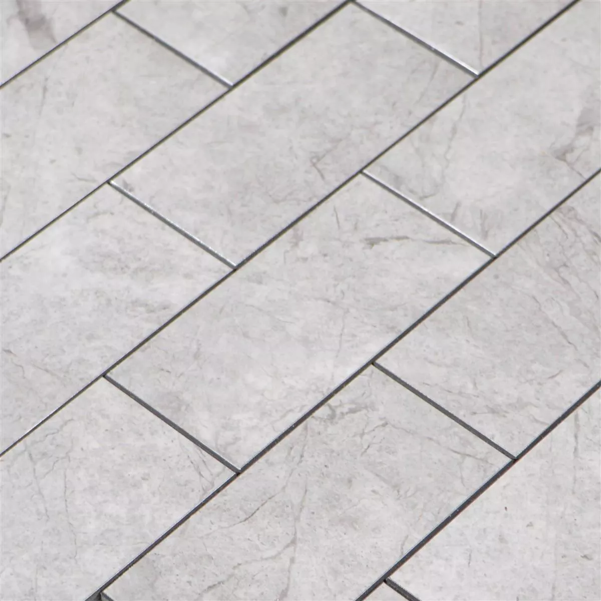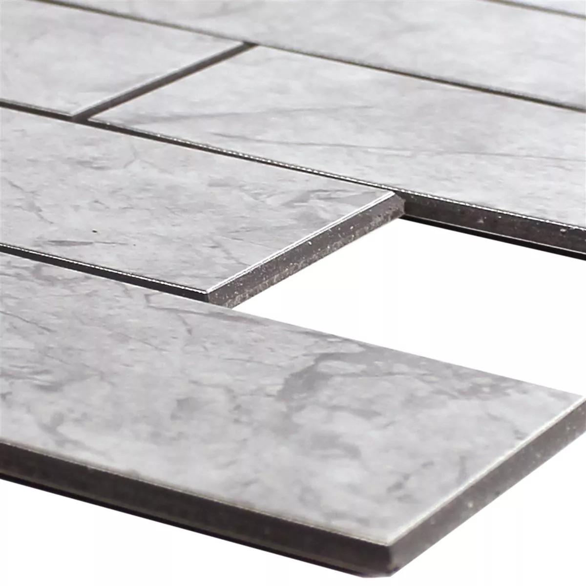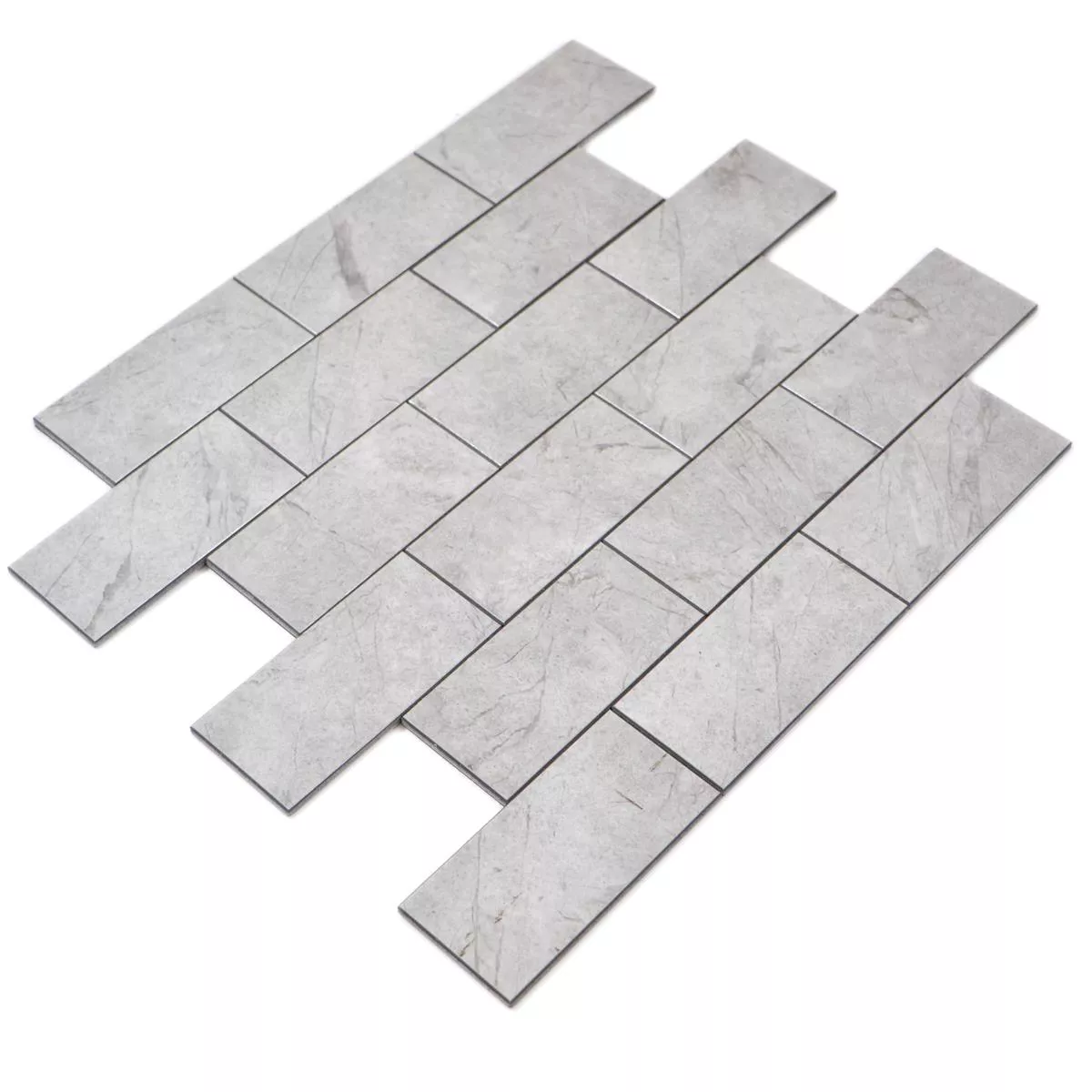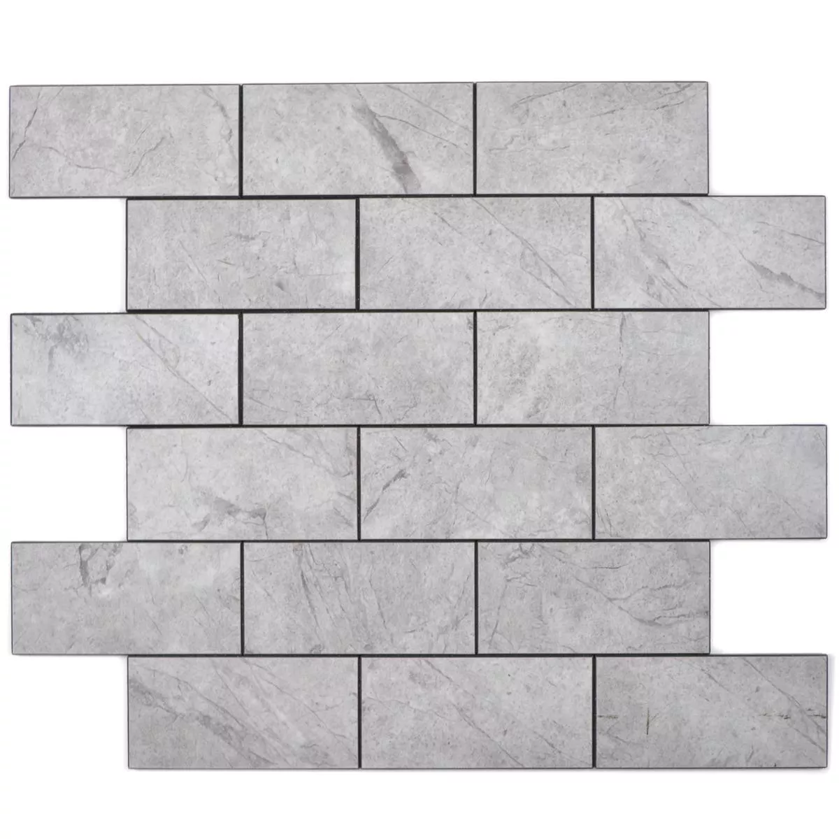 De mozaïektegels zijn gemaakt van vinyl en hebben de afmetingen 49 x 98 mm. Ze zijn 4 millimeter dik en hebben een mat oppervlak. De grijze tegels zijn zelfklevend, waardoor ze gemakkelijk tot een mozaïek gelegd kunnen worden. Ze zijn verlijmd op een passe-partout.De rechthoekige vinyl mozaïektegels zijn geschikt om als wand- en mozaïektegels te leggen. Ze maken de vormgeving van een individuele ruimtesfeer mogelijk zonder tegelzetter.