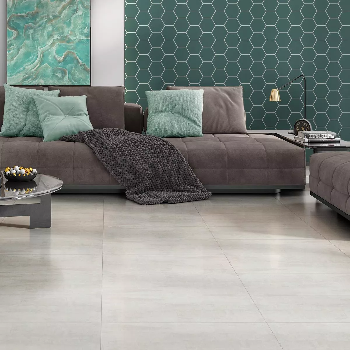 Porcellanato tegels die volgens een specifieke methode zijn gepolijst. Hun oppervlakken zijn gepolijst, maar niet volledig, wat deze tegels een natuurlijke uitstraling geeft die zowel glanzend als mat is.