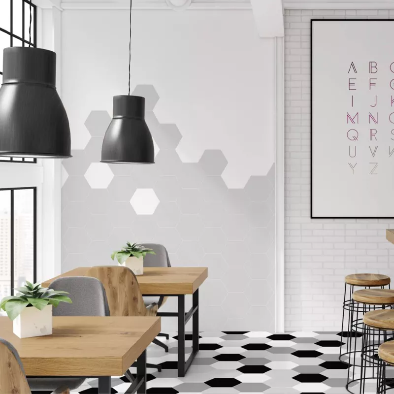 Vloertegels Loire Wit Zeshoek Gestructureerde 23x27 cm