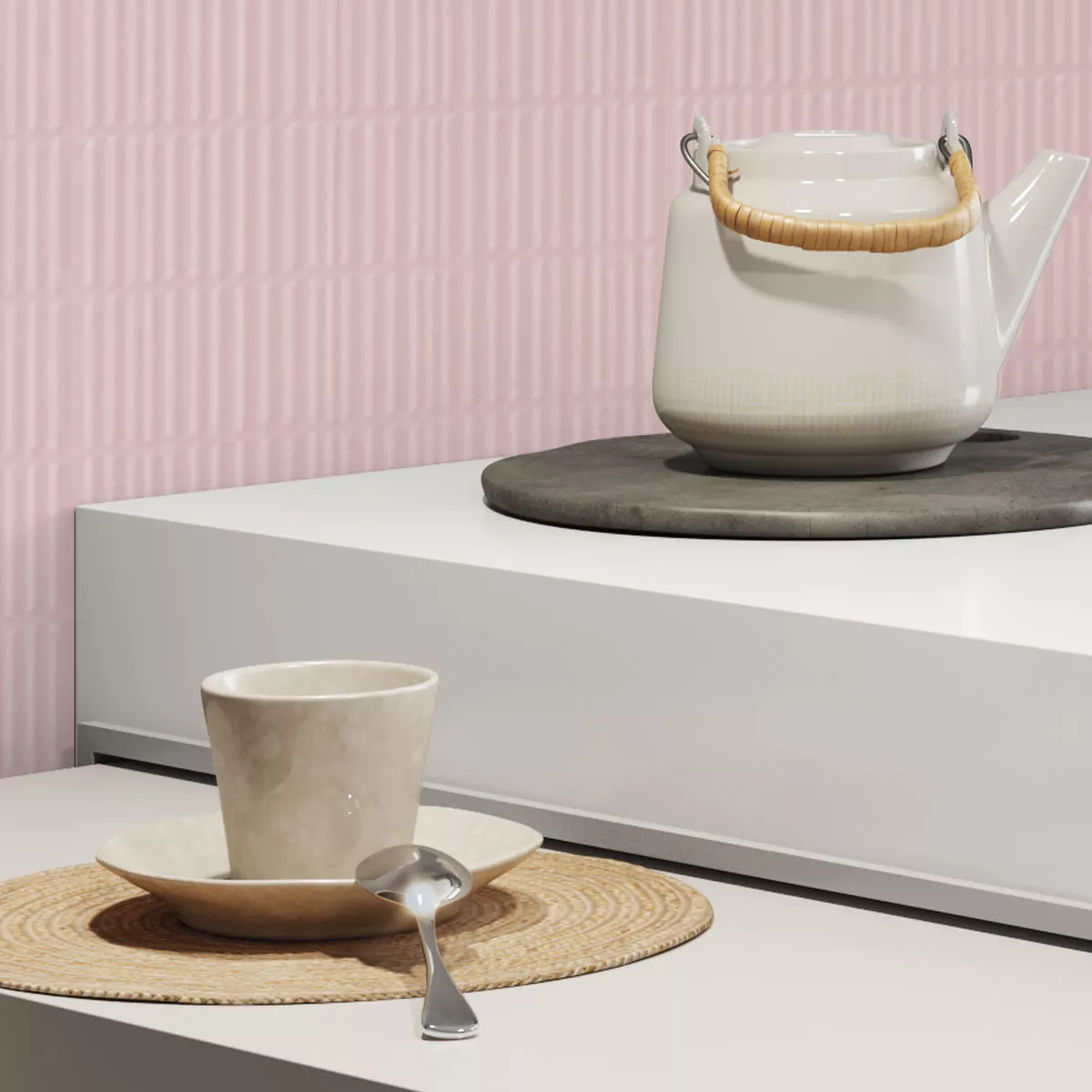 Breng een vleugje nostalgie en elegantie in huis met de Avila Relief Roze Glanzende wandtegels en tover je muren om tot ware kunstwerken.