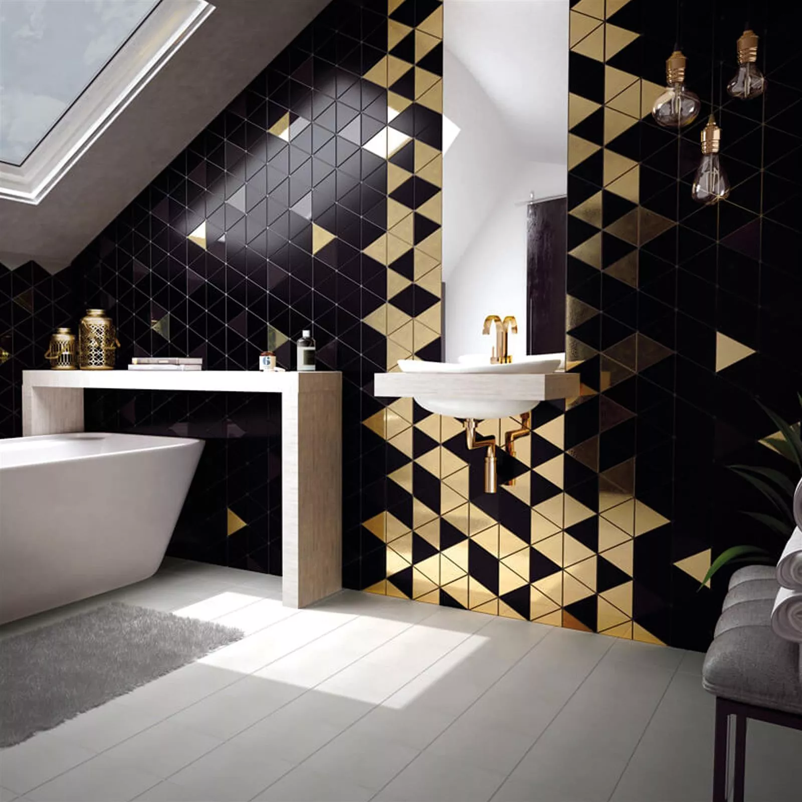 Met een afmeting van 10,8x12,4cm overtuigt de exclusieve Britannia wandtegel niet alleen door zijn driehoekige vorm. De robuuste tegel is 9,3 mm dik en geschikt voor vele creatieve projecten, bij voorkeur binnenshuis. Het materiaal is aardewerk. Hij is verkrijgbaar in de kleuren blauw, crème, goud, grijs, lichtblauw, lichtgrijs, mint, zwart, wit en beige en is een eyecatcher in elke kamer.