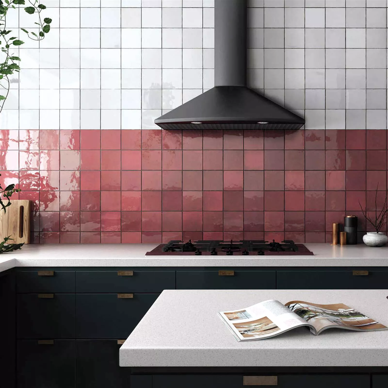 Kies voor de rode Concord-wandtegel om een energieke en elegante toets aan uw interieur toe te voegen met zijn glanzende afwerking en unieke golflook.