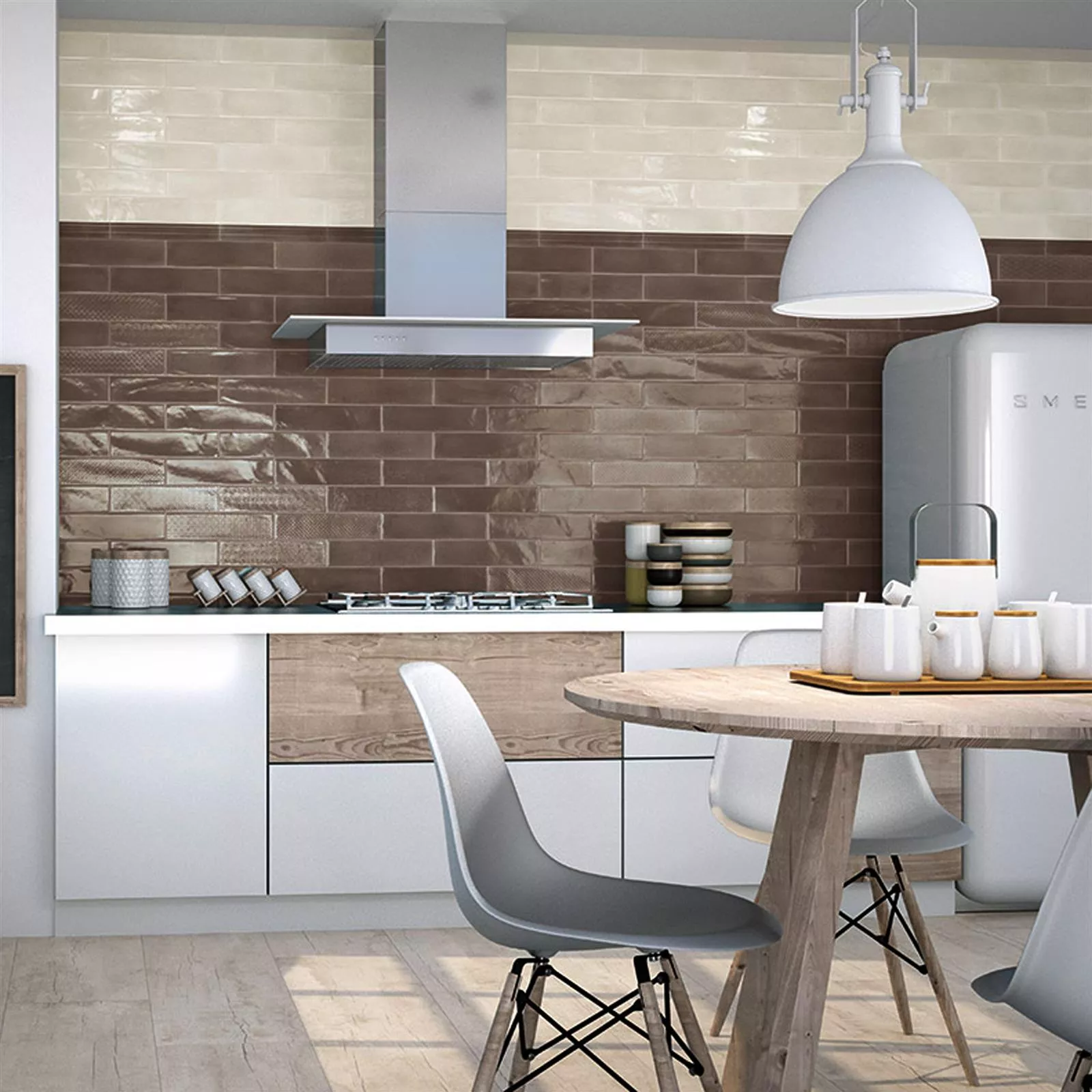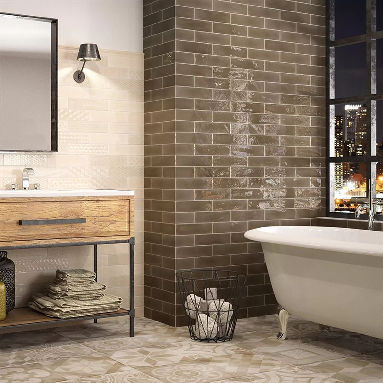 Wandtegels Conway Gegolfd 7,5x30cm Donkerbruin