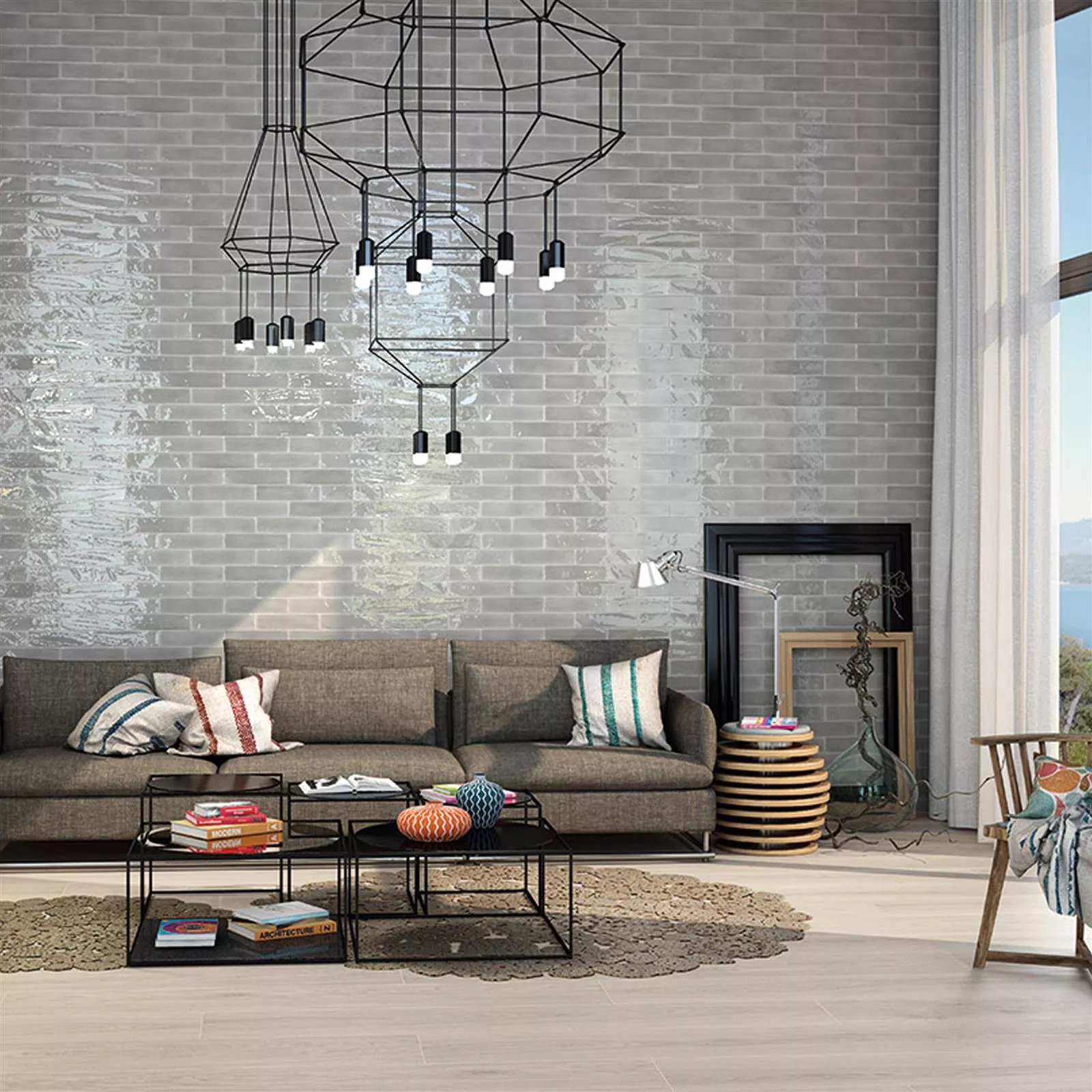 Wandtegels Conway Gegolfd 7,5x30cm Grijs