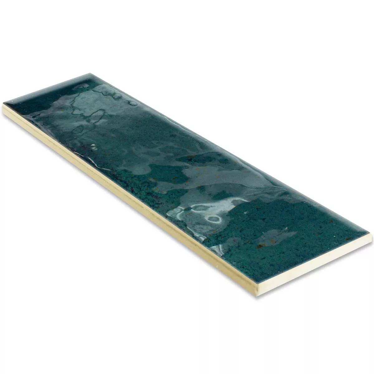 Wandtegels Kiowa Glanzend Gegolfd 6x25cm Blauw