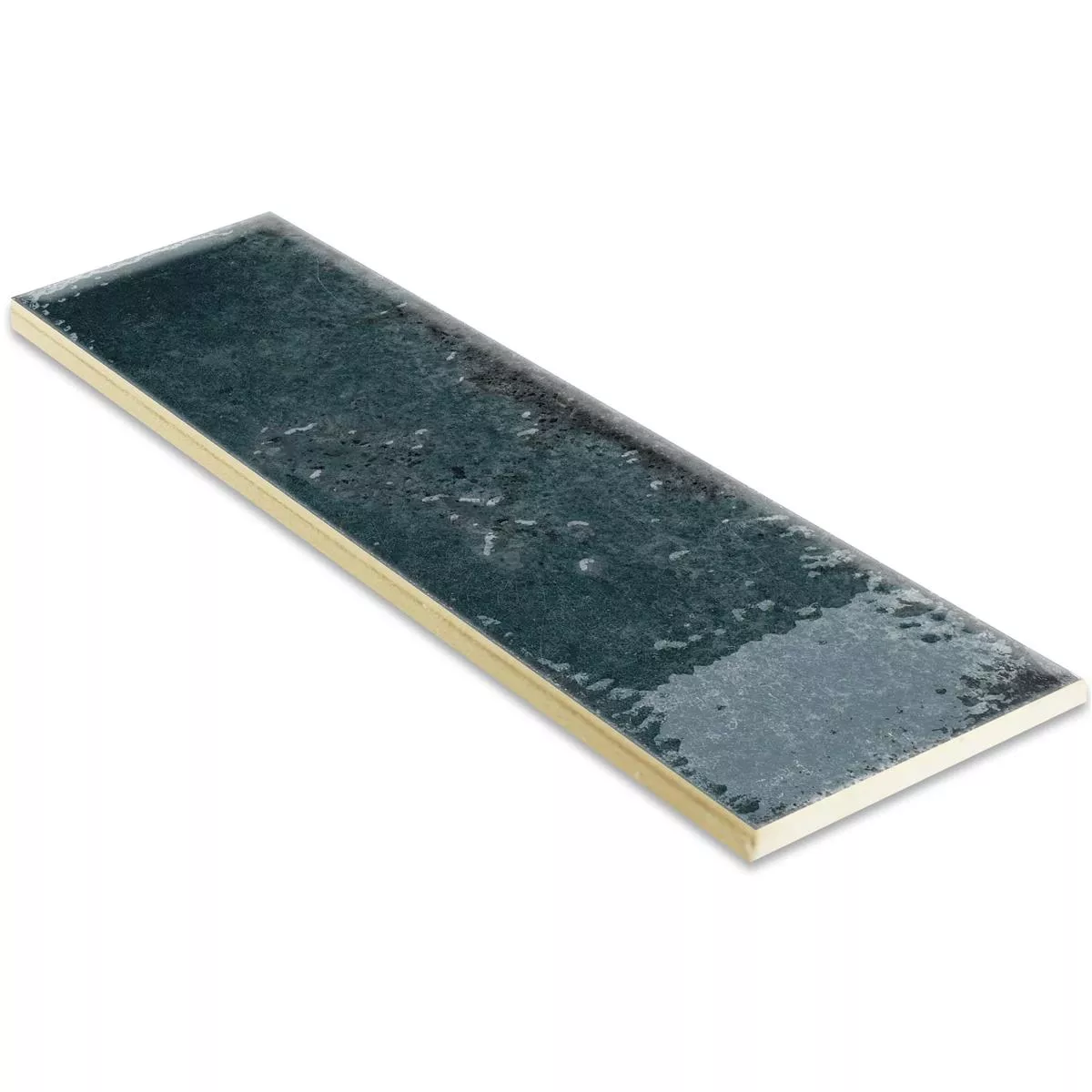 Wandtegels Lara Glanzend Gegolfd 10x30cm Blauw