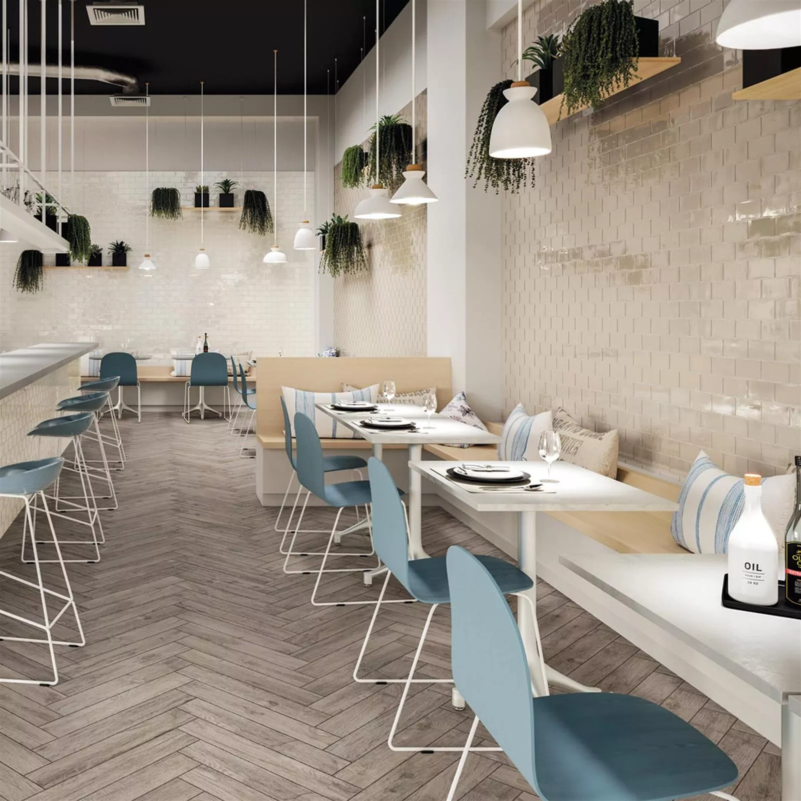 Door het licht golvende oppervlak glinstert de tegel sierlijk en geeft de ruimte een natuurlijke, ingetogen levendigheid. Omdat de aardewerktegel bestand is tegen vocht, is hij ideaal voor badkamers, keukens en sauna's, maar ook andere binnenruimtes kunnen met de wandbekleding gezellig en sfeervol worden gemaakt. De tegel is gemakkelijk te verwerken en geschikt voor het verfraaien van grote en kleine ruimtes. De esthetische kleuren harmoniëren perfect met elkaar. Op deze manier kunnen oppervlakken optisch worden losgemaakt met zeer decoratieve verschillende kleuren of kunnen nissen worden afgezet. Of het interieur nu modern of speels is, deze subtiele tegel past zich aan alle stijlen aan en onderstreept een individuele presentatie zonder zichzelf te overweldigen.