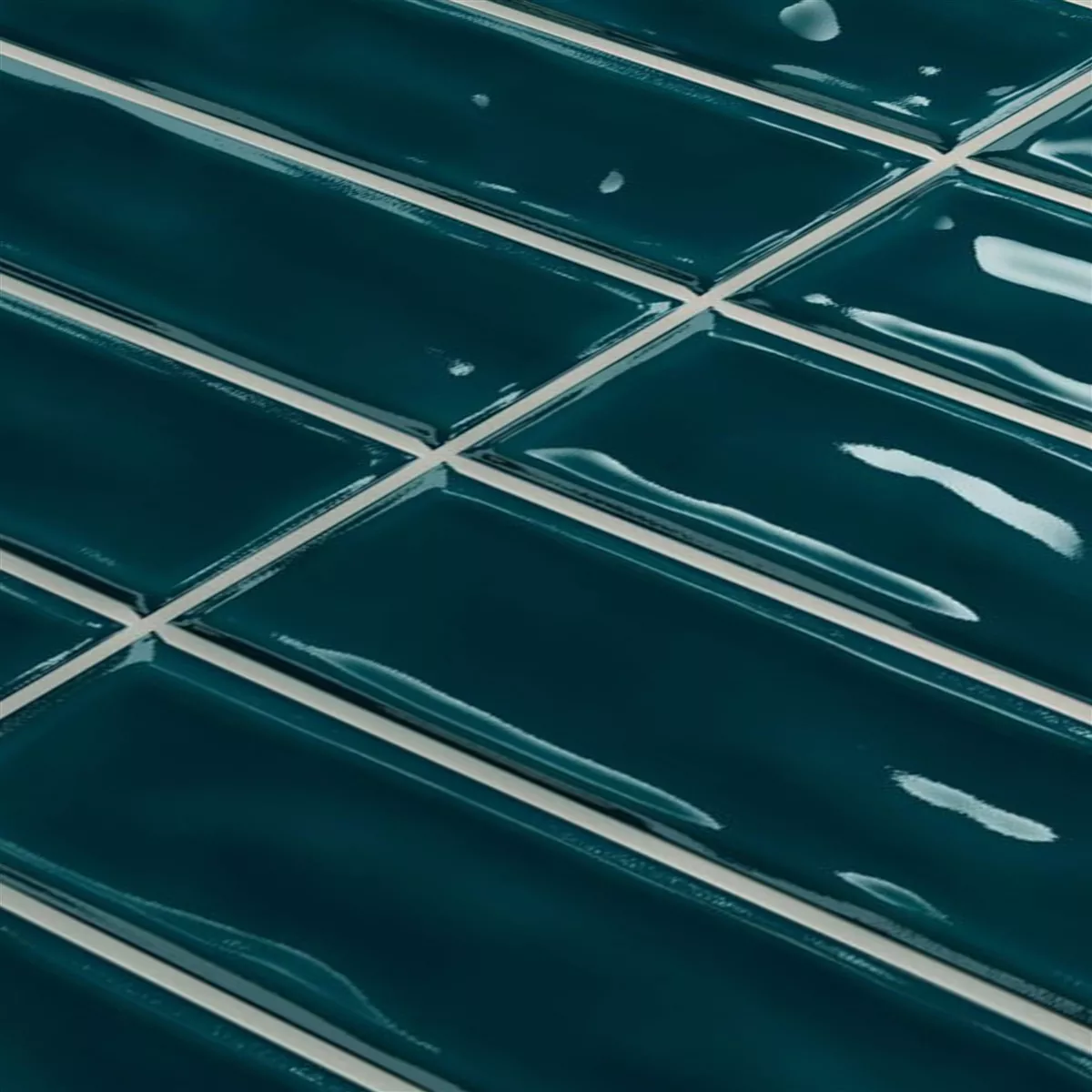 Wandtegels Verbania Brick Glanzend Gegolfd Petrol 20x20cm