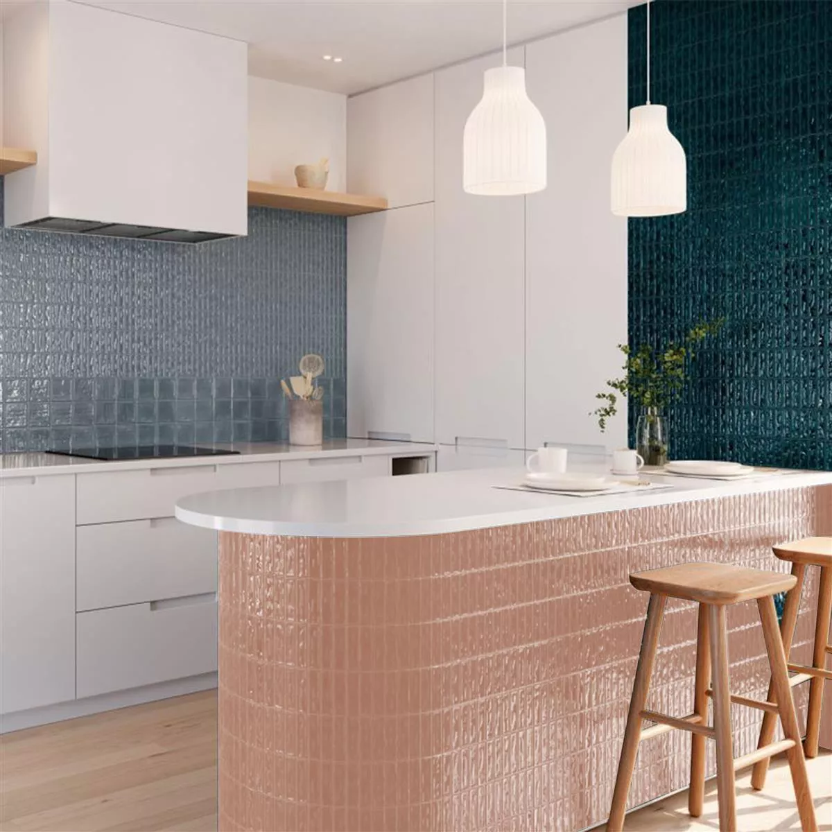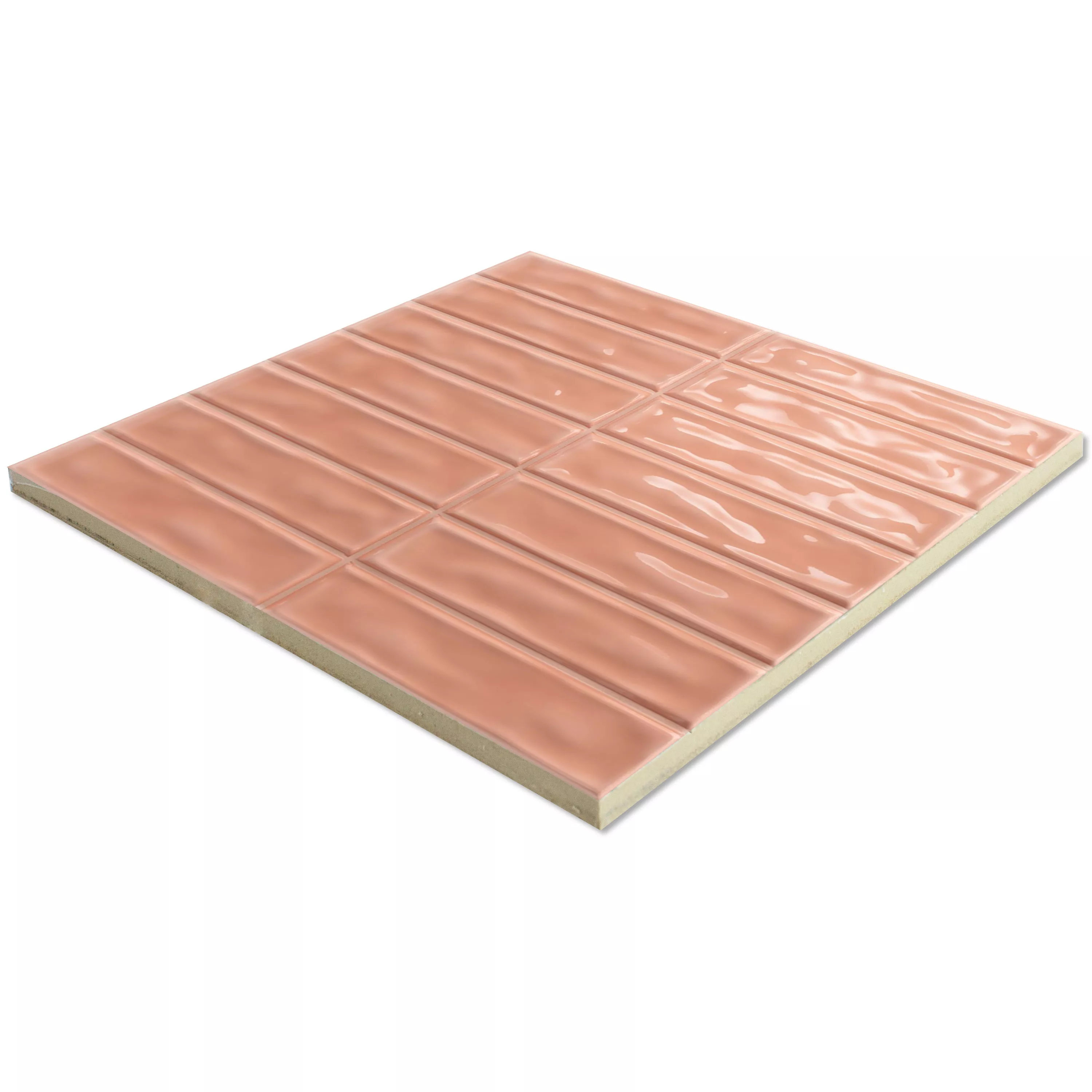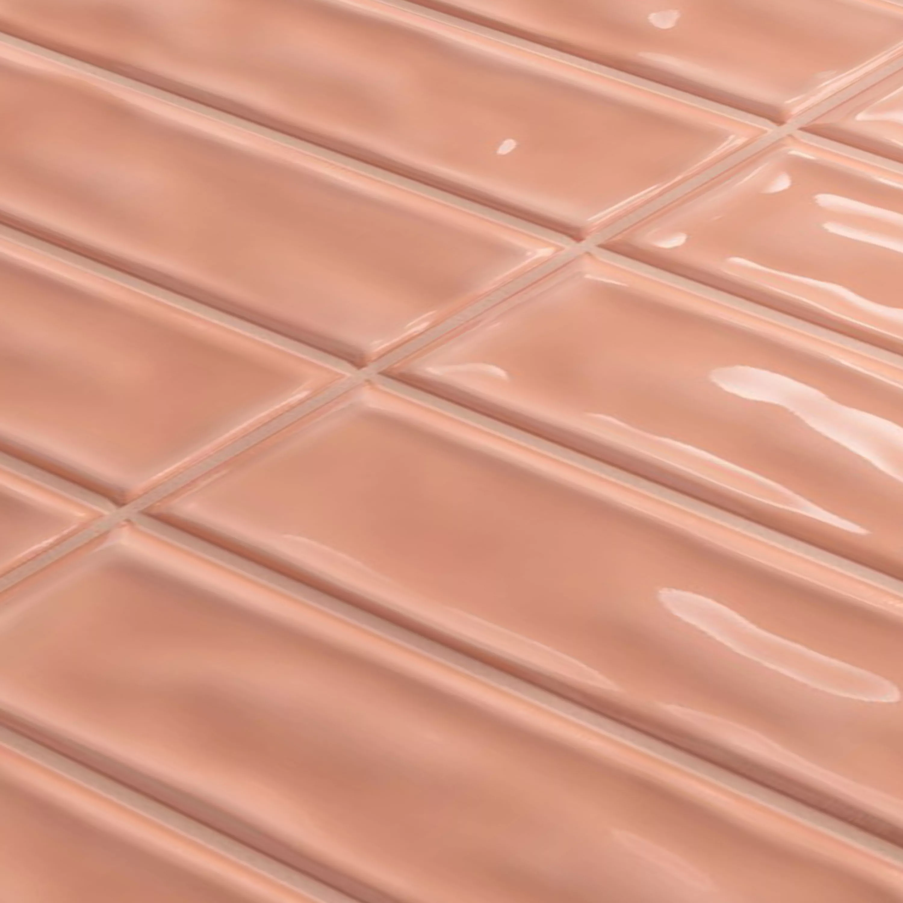 Wandtegels Verbania Brick Glanzend Gegolfd Rosa 20x20cm