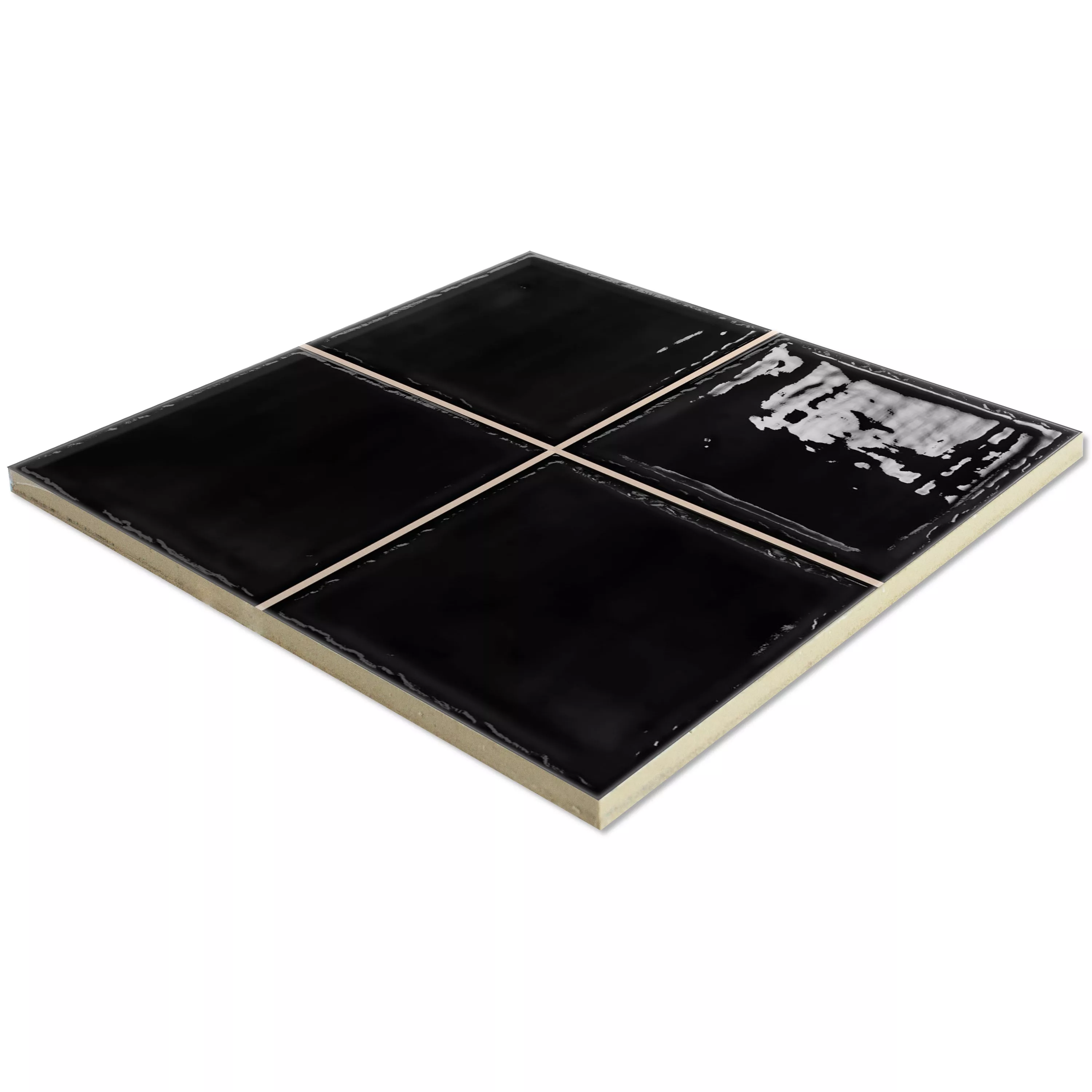 Wandtegels Verbania Glanzend Gegolfd Zwart 20x20cm