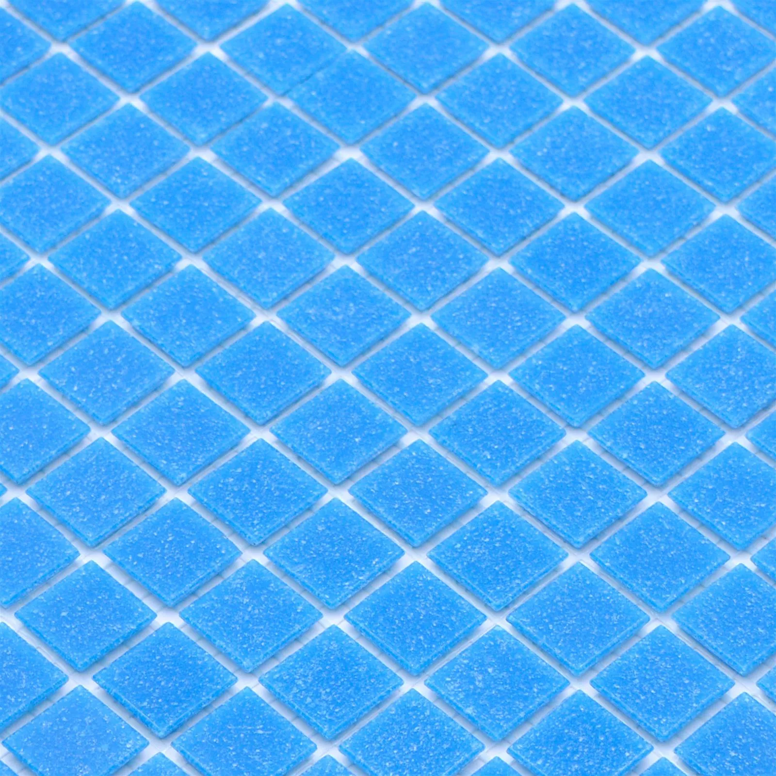 Onze tegels voor uw zwembad: De intense blauw-turkoois mix tovert het zwembad om in een aantrekkelijk water, omdat het water een heerlijk heldere kleur heeft. Van een afstand lijkt het alsof je de Noordzee mee naar huis hebt genomen. Het zijn mozaïektegels die met papier op losse matten worden gelijmd zodat ze snel met de hand gelegd kunnen worden. Dit vereist niet alleen een professionele hand. De vierkante matten kunnen eenvoudig in het zwembad worden gelegd. Het weefsel kan met een mes worden gesneden en op de gewenste maat worden aangepast.